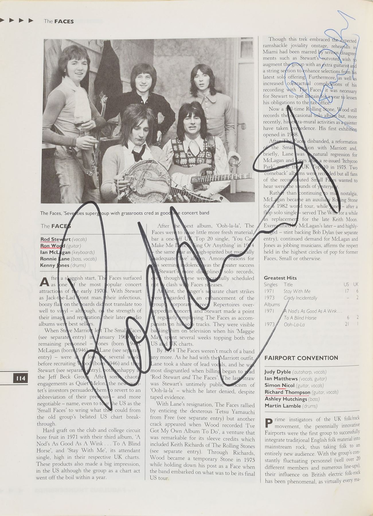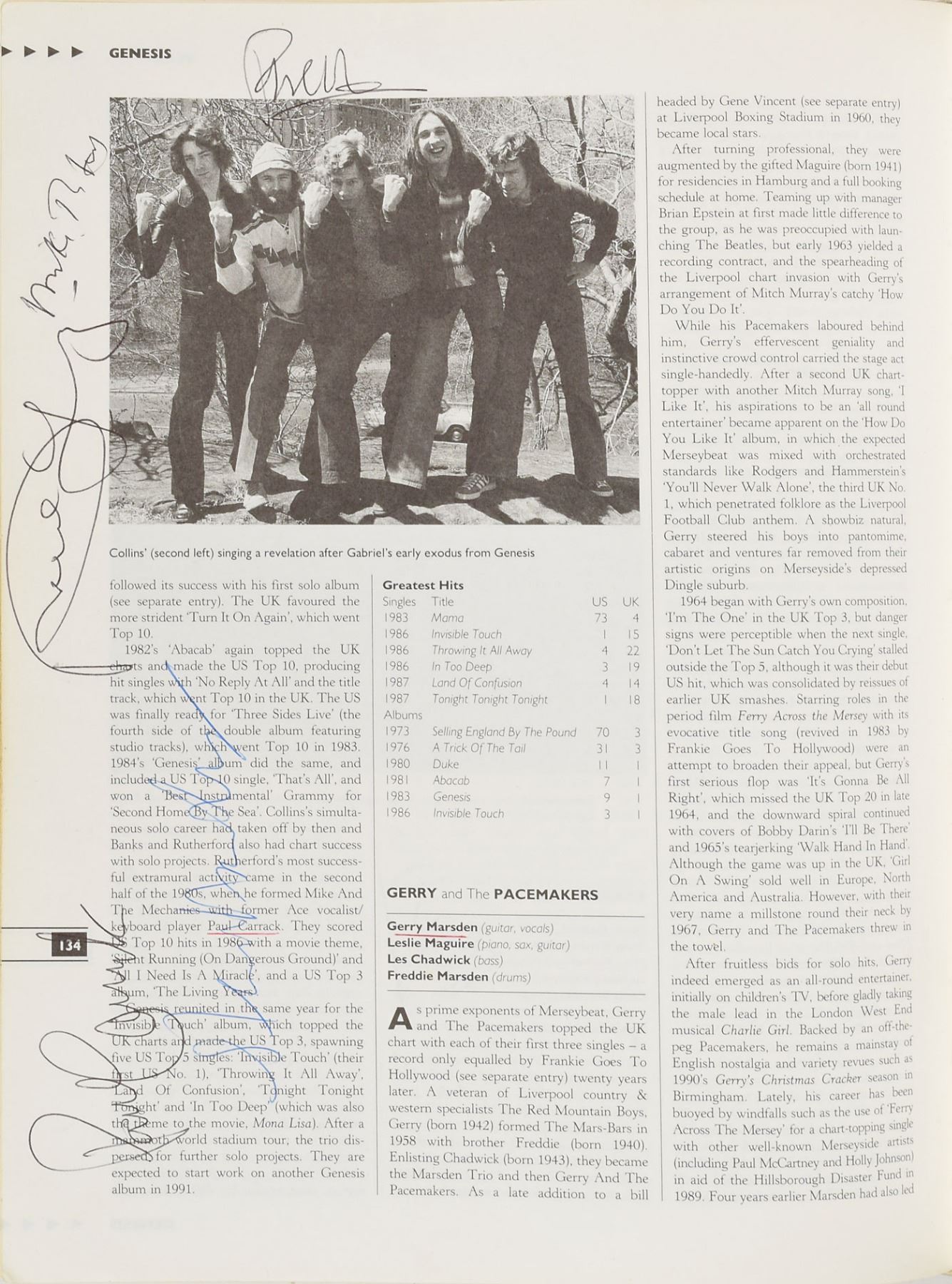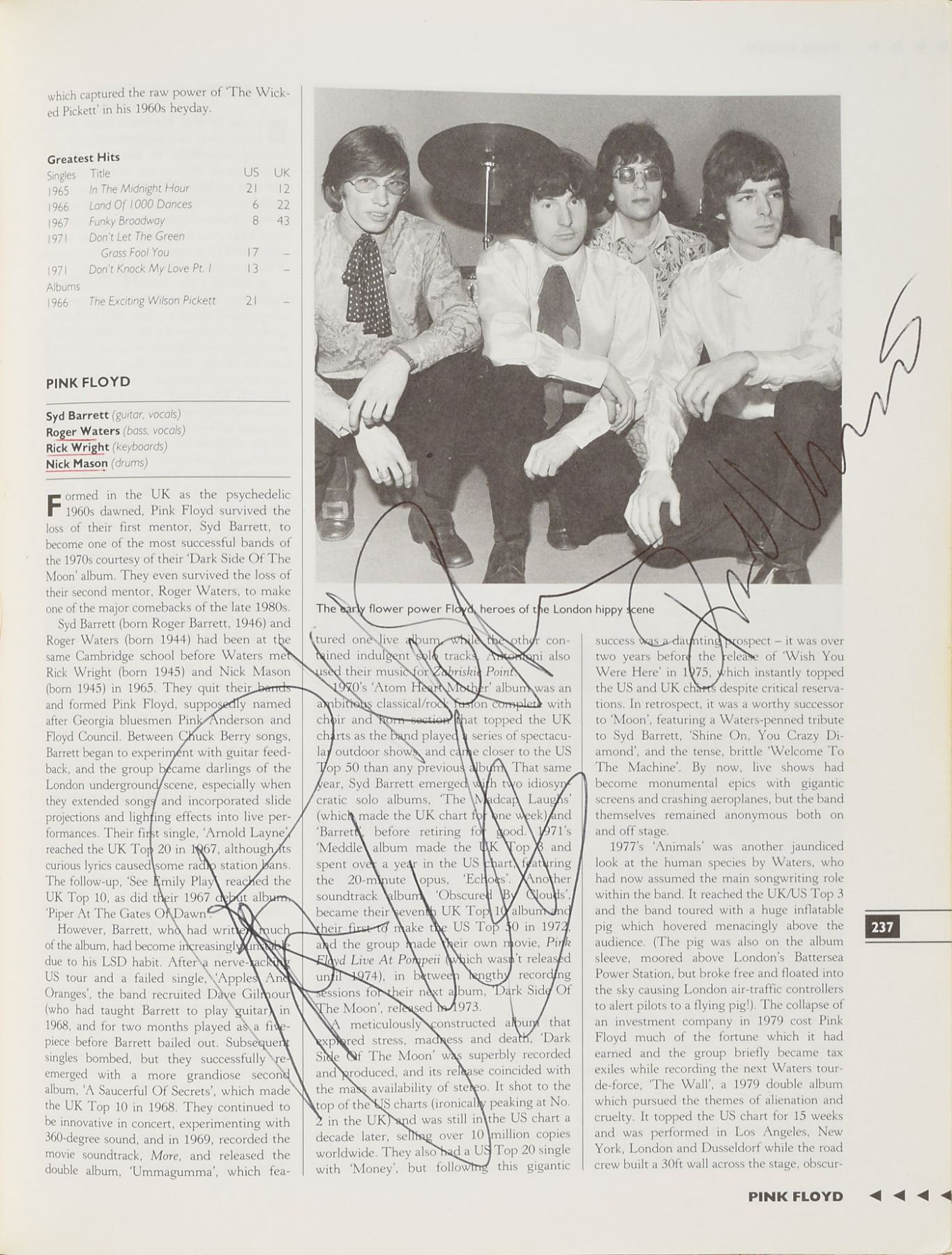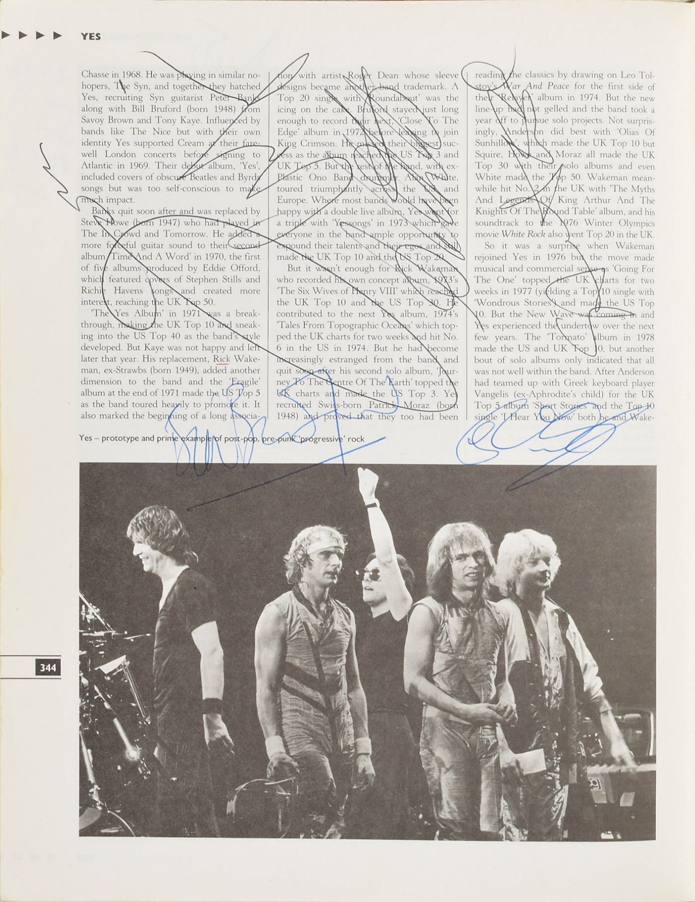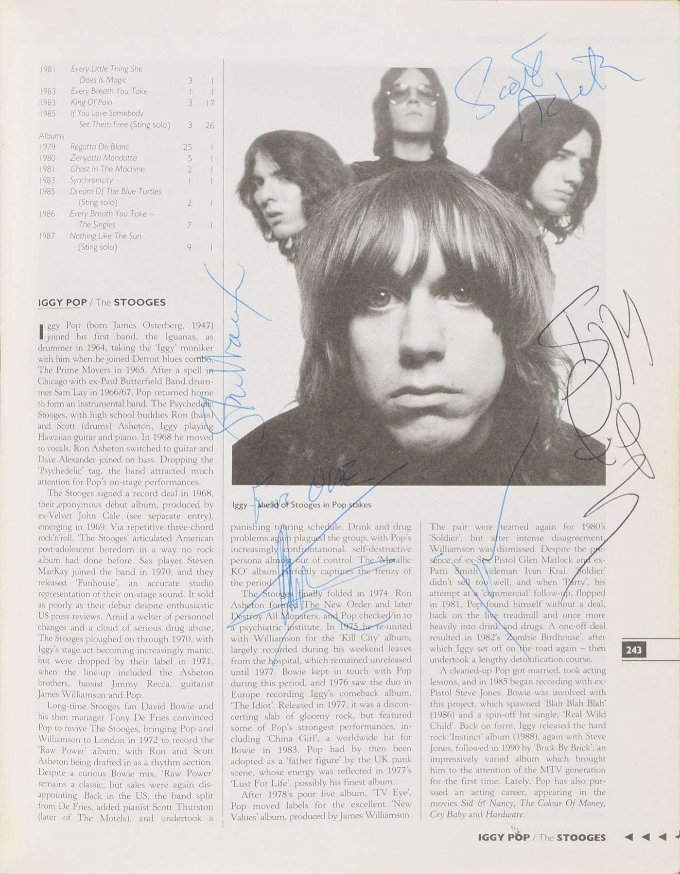 Incredible multi-signed book: Who’s Who in Rock & Roll. First edition. London: Hamlyn Publishing, 1991. Hardcover with dust jacket, 9.5 x 11.5, 350 pages. Signed inside in ballpoint and felt tip by hundreds of legendary solo acts and musical groups (in varying forms of completeness), with some inscribed to “Ove." Highlights include: ABBA, AC/DC, Aerosmith, The Beach Boys, Paul McCartney, Ringo Starr, Chuck Berry, Black Sabbath, Blind Faith, David Bowie, James Brown, The Byrds, Johnny Cash, Chicago, Eric Clapton, Joe Cocker, Leonard Cohen, Alice Cooper, Cream, Creedence Clearwater Revival, CSNY, Deep Purple, Def Leppard, John Denver, Depeche Mode, Bo Diddley, Duran Duran, The Eagles, Eurythmics, The Everly Brothers, Roxy Music, Fleetwood Mac, Guns n’ Roses, Heart, Whitney Houston, Iron Maiden, The Jacksons, Elton John, Judas Priest, B. B. King, The Kinks, KISS, Led Zeppelin, Jerry Lee Lewis, Little Richard, The Sex Pistols, Joni Mitchell, The Moody Blues, Van Morrison, Motley Crue, Yoko Ono, Pet Shop Boys, Pink Floyd, Rainbow, R.E.M., The Rolling Stones, Carlos Santana, Simon and Garfunkel, Patti Smith, Bruce Springsteen, Steely Dan, Cat Stevens, Sting, James Taylor, Ike and Tina Turner, U2, Van Halen, Tom Waits, The Who, Stevie Wonder, The Yardbirds, Yes, ZZ Top, and many more. The book is presented with a custom leather-bound cover with affixed photos of musicians taken at the time of signing. The covers of the book show expected moderate to heavy wear, however the inner signed pages are in fine, clean condition.
