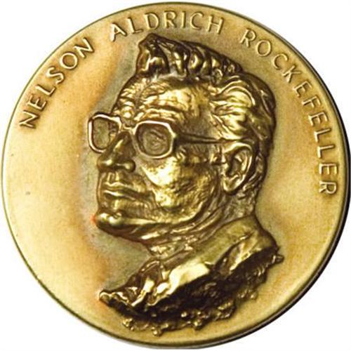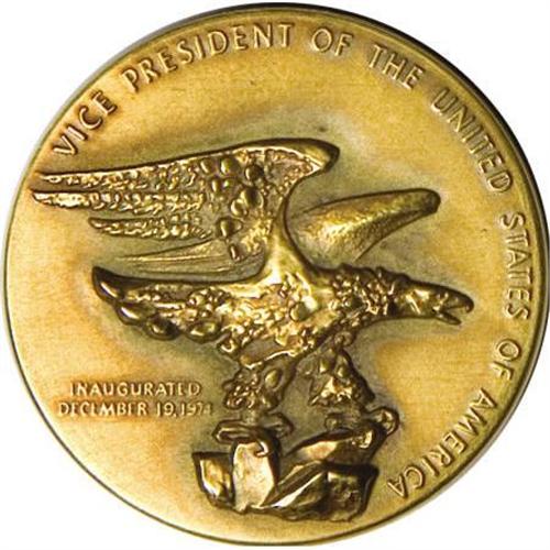 <B>Rockefeller Gold Medal, 1974 Vice Presidential Inaugural.</B></I> 30.9 gm, 32 mm, struck by the Medallic Art Co. in <B>18-karat gold. </B></I>Engraved by Frank Eliscu, whose portrait of Rockefeller gives the medal a high relief with a rugged finish. This is medal number 293 from the mintage of only 935 pieces, with the original case of issue.<BR><BR><b>Shipping:</b> Coins & Currency (<a target="_blank" href="http://www.heritageauctions.com/common/shipping.php">view shipping information</a>)