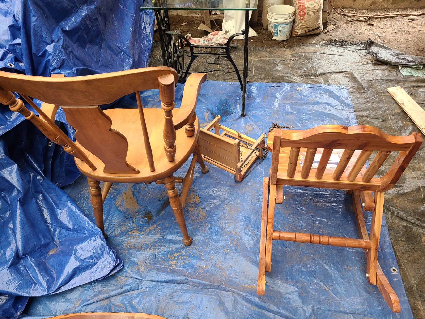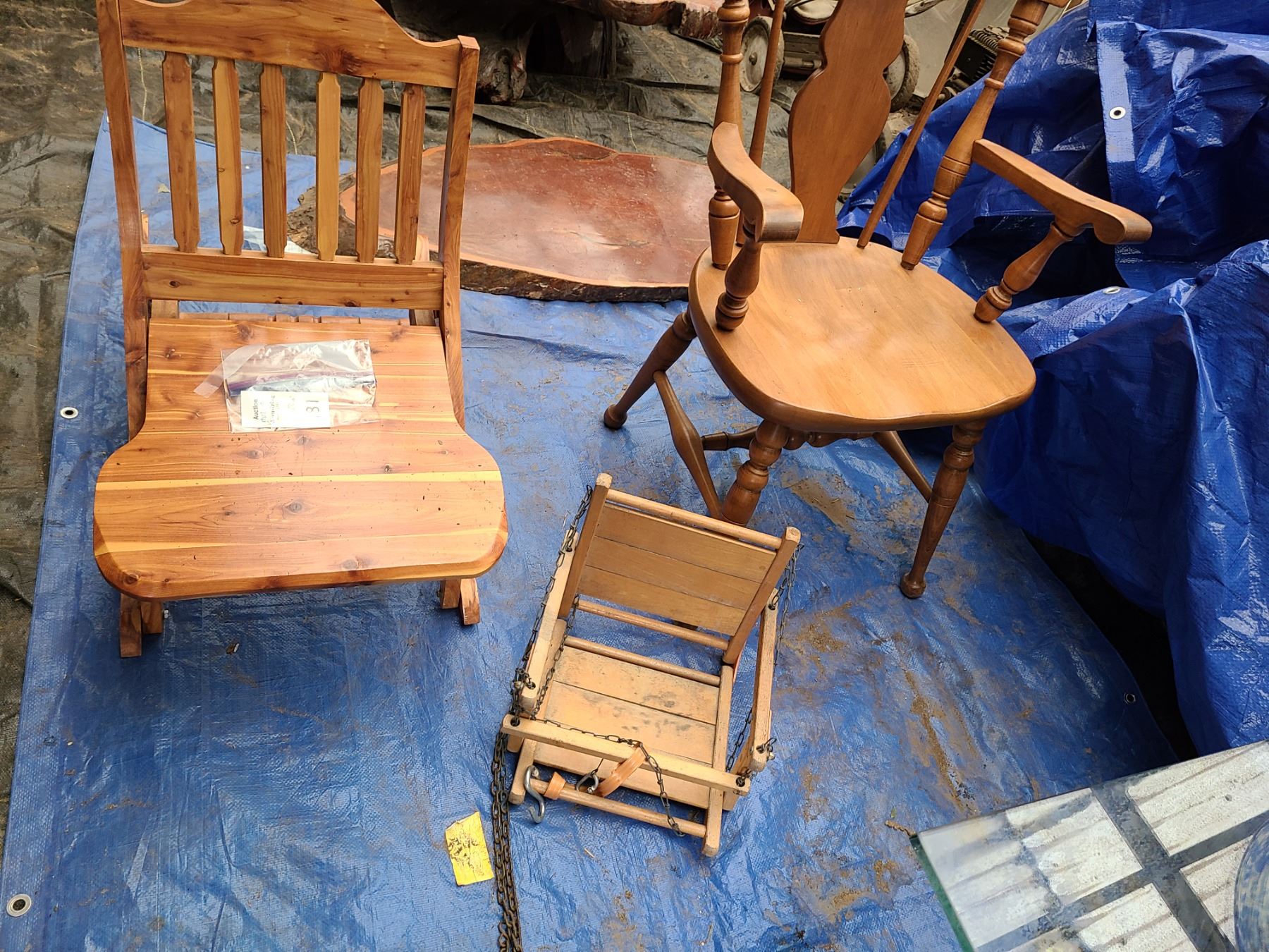 Folding rocker, baby swing chair, and dining chair 19x17x35. Pickup at 10 am.