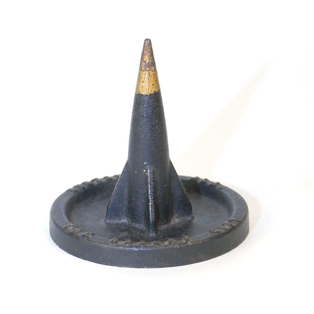 Souvenir metallic rocket paperweight, measuring 3.25? in diameter at the base and standing 3.75? tall, with a rocket protruding from the center. In raised letters around the edge is “Huntsville, Alabama, The Rocket City.” In fine condition, with most of the paint worn off the lettering.