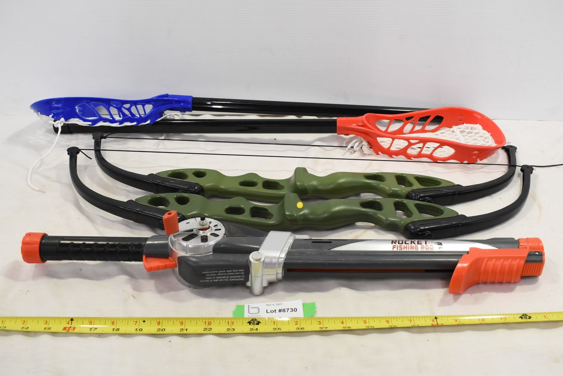 Rocket Fishing Rod (Untested), Plastic Bows & Lacrosse Sticks
