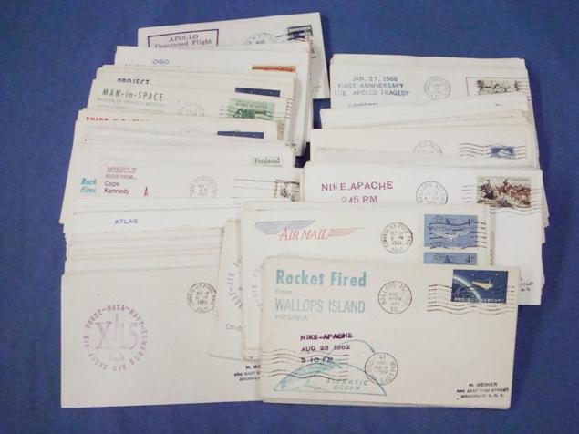 Interesting lot of (200)+ various 1950'60's era space and rocket mail covers. Many Wallops Island rocket mail covers, Mercury and Apollo flights. Generally fresh and useful. Est.$75-150