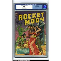 Rocket to the Moon #nn White Mountain pedigree (Avon, 1951). Featuring a Joe Orlando cover and interior art, this Avon one-shot adapts Otis Aldebert Kline's "Maza of the Moon". A nice example from the White Mountain collection, this copy has an abrasion along the top spine area, the one defect that puts it into the Fine category. Otherwise a very attractive book with nice pages. CGC FN 6.0 Off-white to white pages. Overstreet 2001 FN 6.0 value = $308. Important notice: We expect to be auctioning lots at the rate of 200-250 per hour. Sometimes eBay Premier live bid software cannot keep up with that pace, so we strongly recommend that you place a realistic proxy bid now as insurance to avoid disappointment. Also please note that all Heritage/CAA lots purchased through eBay Premier carry a 20% Buyer's Premium.