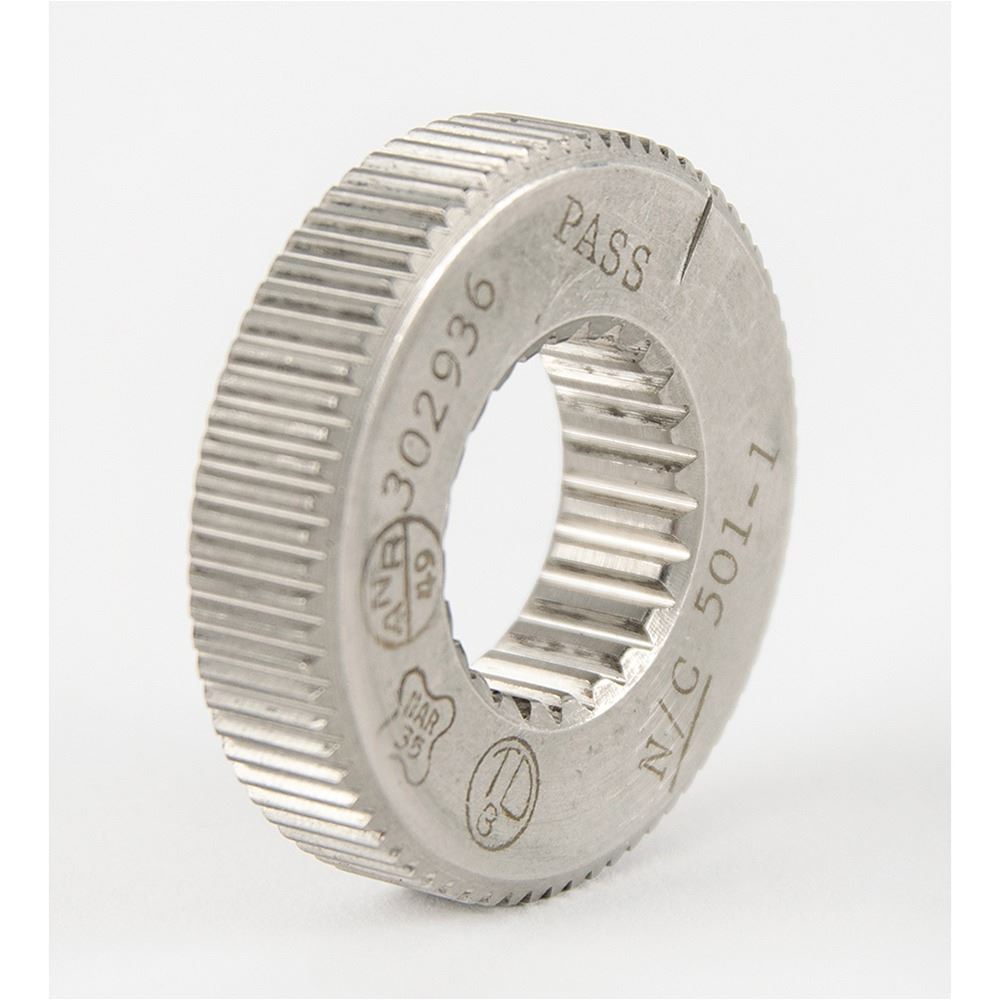 A 1967 hot-fired F-1 Engine Gas Generator Ball Valve Insert, 1.5è in diameter, covered with part number and acceptance stamps: ‰ÛÏ302936, Pass, N/C 501-1.‰Û
