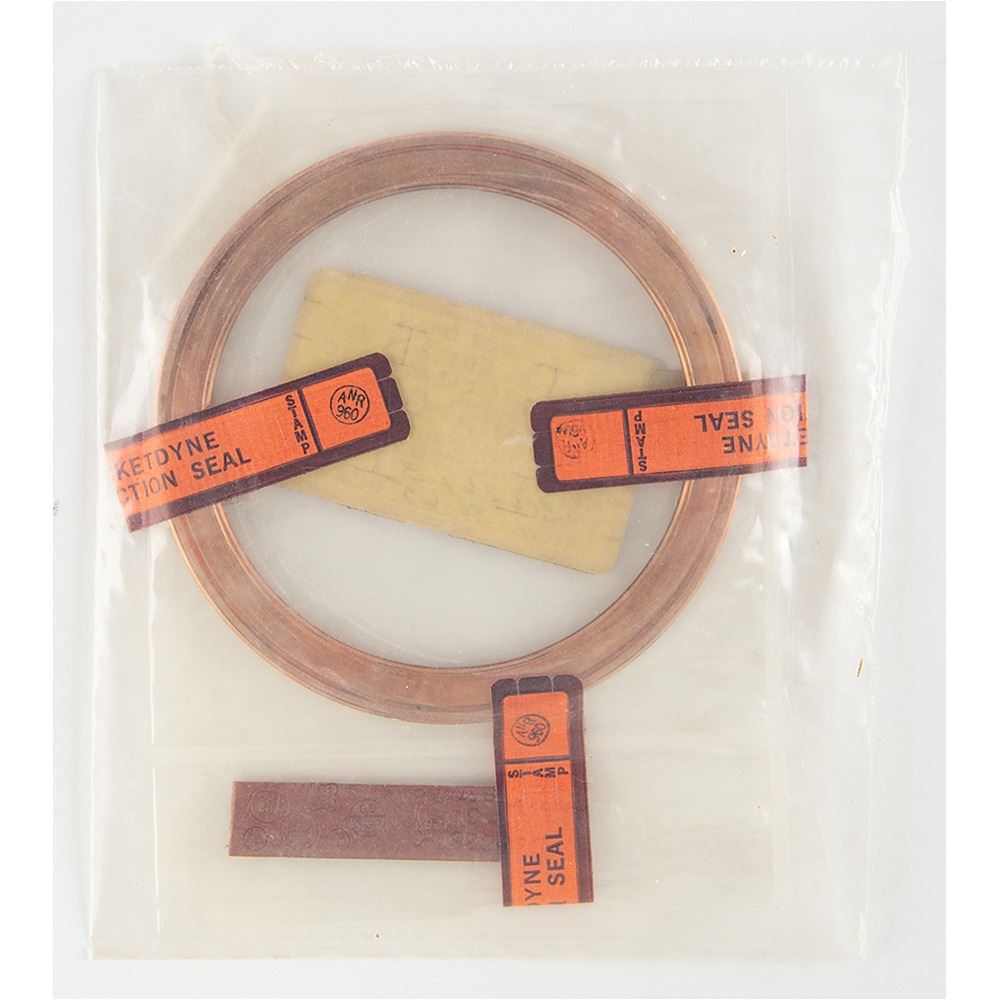 An F-1 engine hot gas seal for the pressurization system, 4è in diameter, clean and still sealed in original packaging with multiple red-and-orange ‰ÛÏRocketdyne Inspection‰Û seals and interior cleaning tag marked as ‰ÛÏRA0110-004, Propellant (O2, H2, RP-1) and Pneumatic Service, P/N 306261-3, Date 11-30-65.‰Û