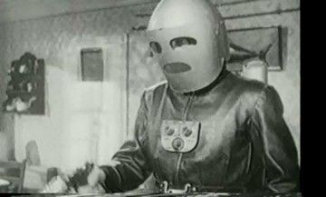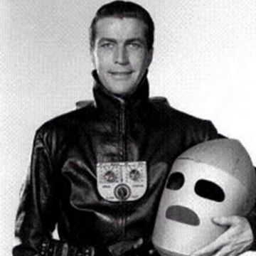 The enormously popular 1949 12 episode Republic series "King of the Rocket Men, starring Tristram Coffin, had a whole generation of boys leaping in the air, arms outstretched in an effort to soar through the heavens and save the world. Rocket Man wore a special helmet and faceplate. This is an exact casting created from the original mold from the iconic face plate used in the series. It is made of painted fiberglass, and is in good condition with only minor chips on some of the edges. Comes with a Letter of Provenience. Mask is approx. 10"x15"