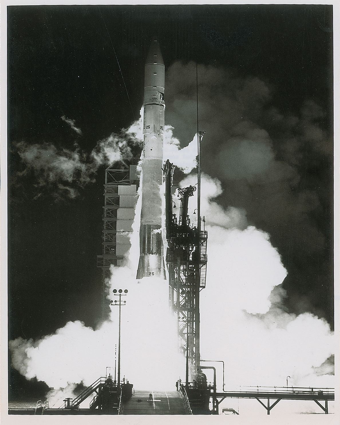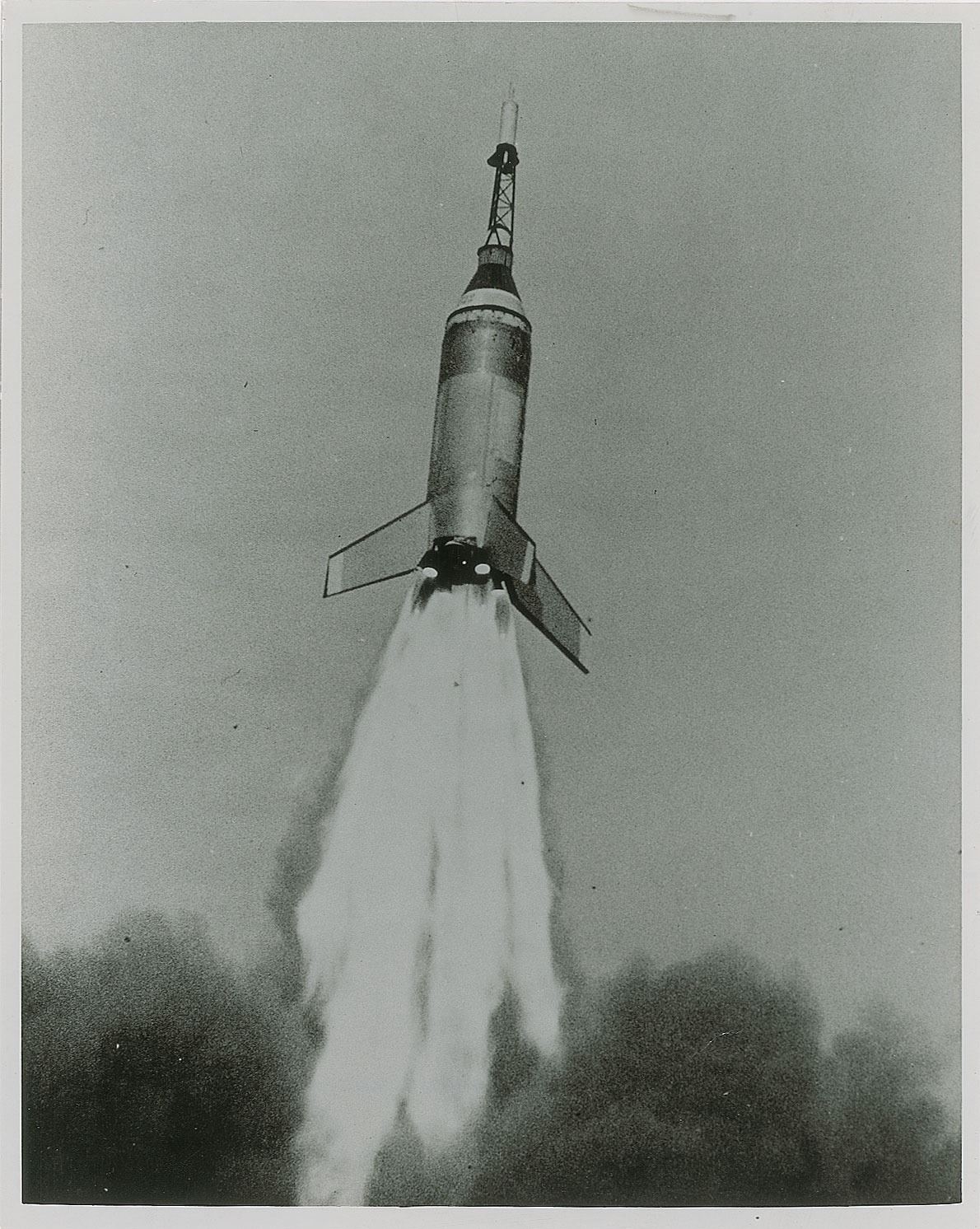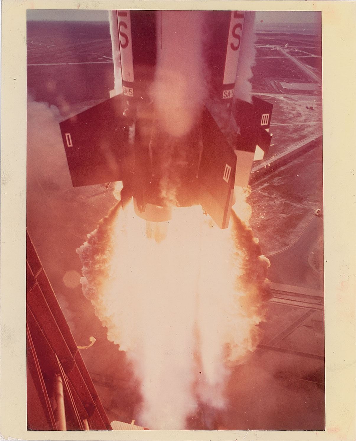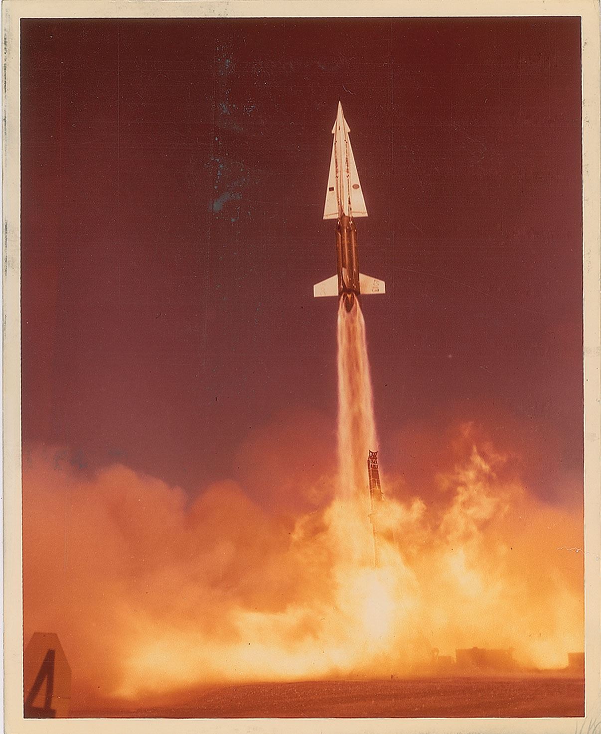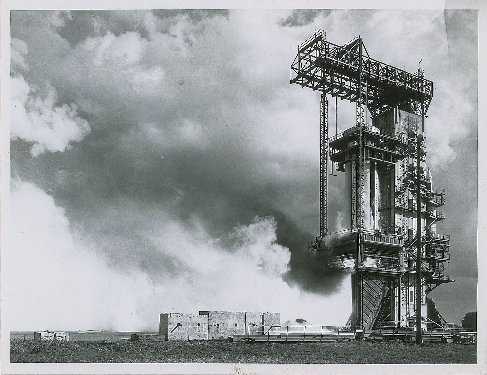 Image subjects include: an attempted Titan launch at the Patrick AFB in December 1959; an Atlas-Centaur launching with the Intelsat IV communications satellite from Cape Kennedy in January 1971; a rocket lineup consisting of the Hermes, Jupiter, Juno II, Redstone, Jupiter-C, Mercury-Redstone, and the Saturn I booster; the liftoff of a Little Joe booster from Wallops Station, Virginia; the successful submarine launch of a Polaris test vehicle in July 1960; the fiery launch of the Army’s Nike Zeus missile from the White Sands Missile Range in December 1960; the launch of the Army’s Nike Hercules missile from White Sands in February 1961; the ascension of the Titan II rocket at Cape Canaveral in March 1962; a sequential hour-by-hour rollout of the Apollo 4 Saturn V launch vehicle; the liftoff of the Atlas-D rocket in May 1965, and many more. In overall fine condition, with some creases, small tears, and wear to edges, and some editorial notations to image sides.