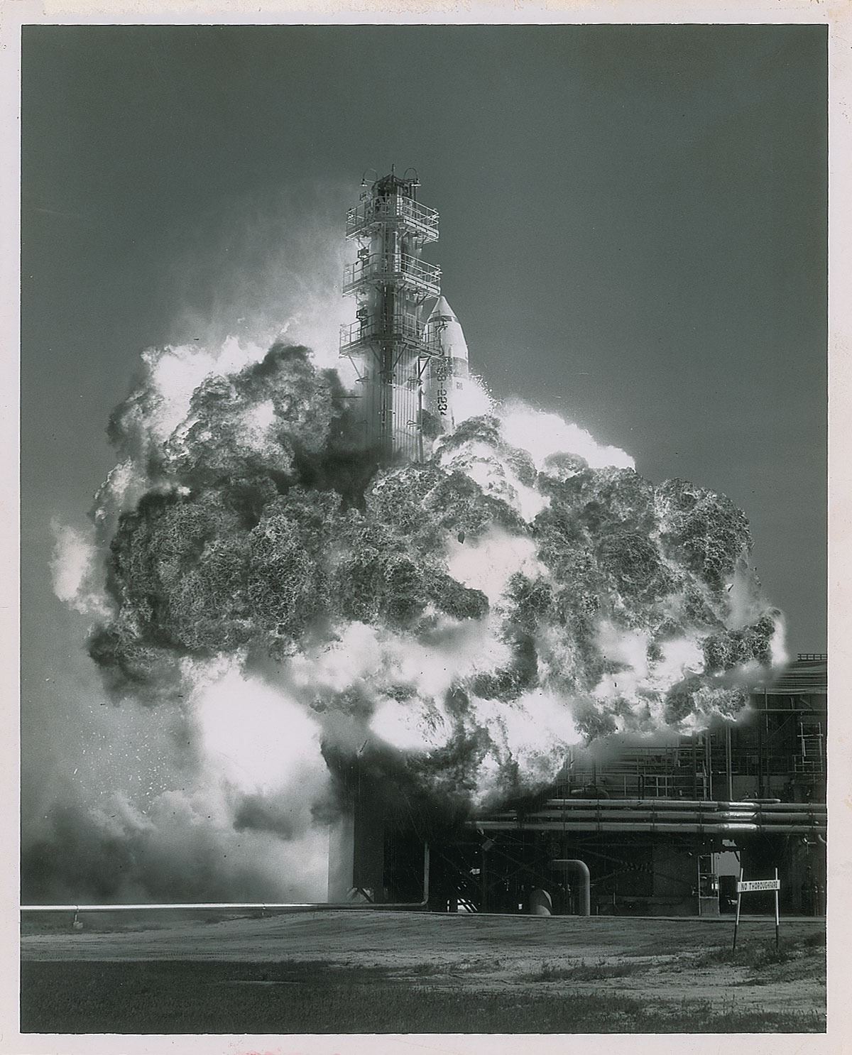 Powerful collection of 32 vintage official glossy NASA photographs, each approximately 8 x 10 and 10 x 8, documenting the evolution of rocketry during America’s race to space in the 1960s. The photos, five of which are color, feature the following caption text or stamps to reverse: NASA (11), NASA-Marshall (9), George C. Marshall, Public Affairs Office (3), U.S. Army (2), U.S. Air Force (3), U.S. Navy (1), and Chronicle Magazine, NASA Section (3). A total of 21 photos bear “Return to: Chronicle Files” press stamps on the reverse, and numerous photos feature annotations or affixed stickers or clippings.