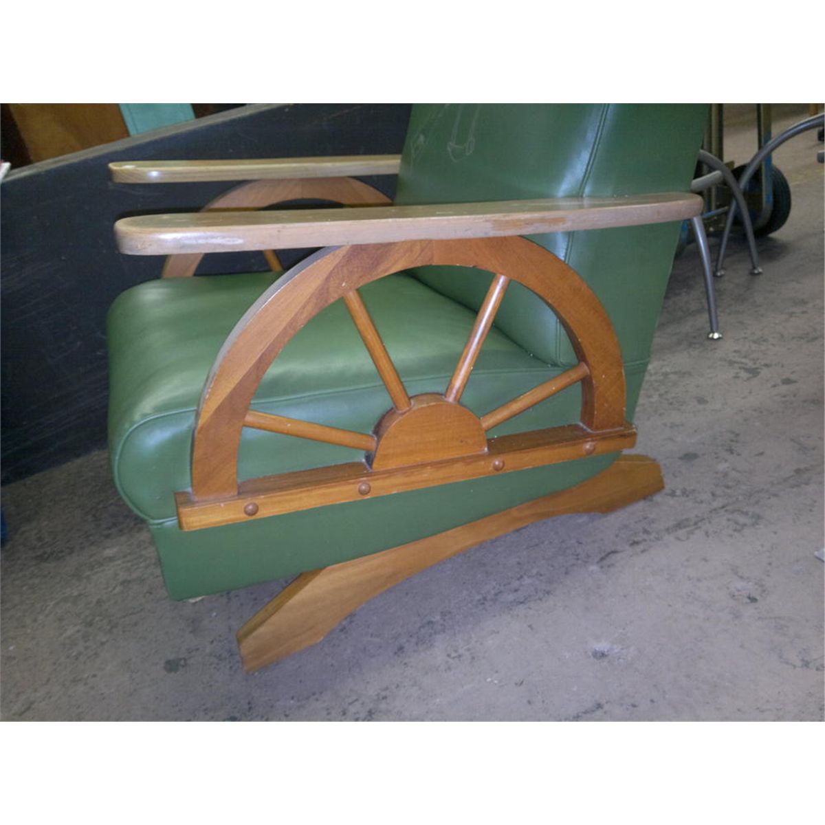Rocking Chair Green with pine wagon wheel style sides L 28.5in W 34in h 33in
