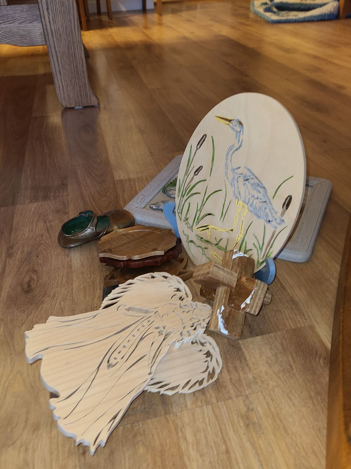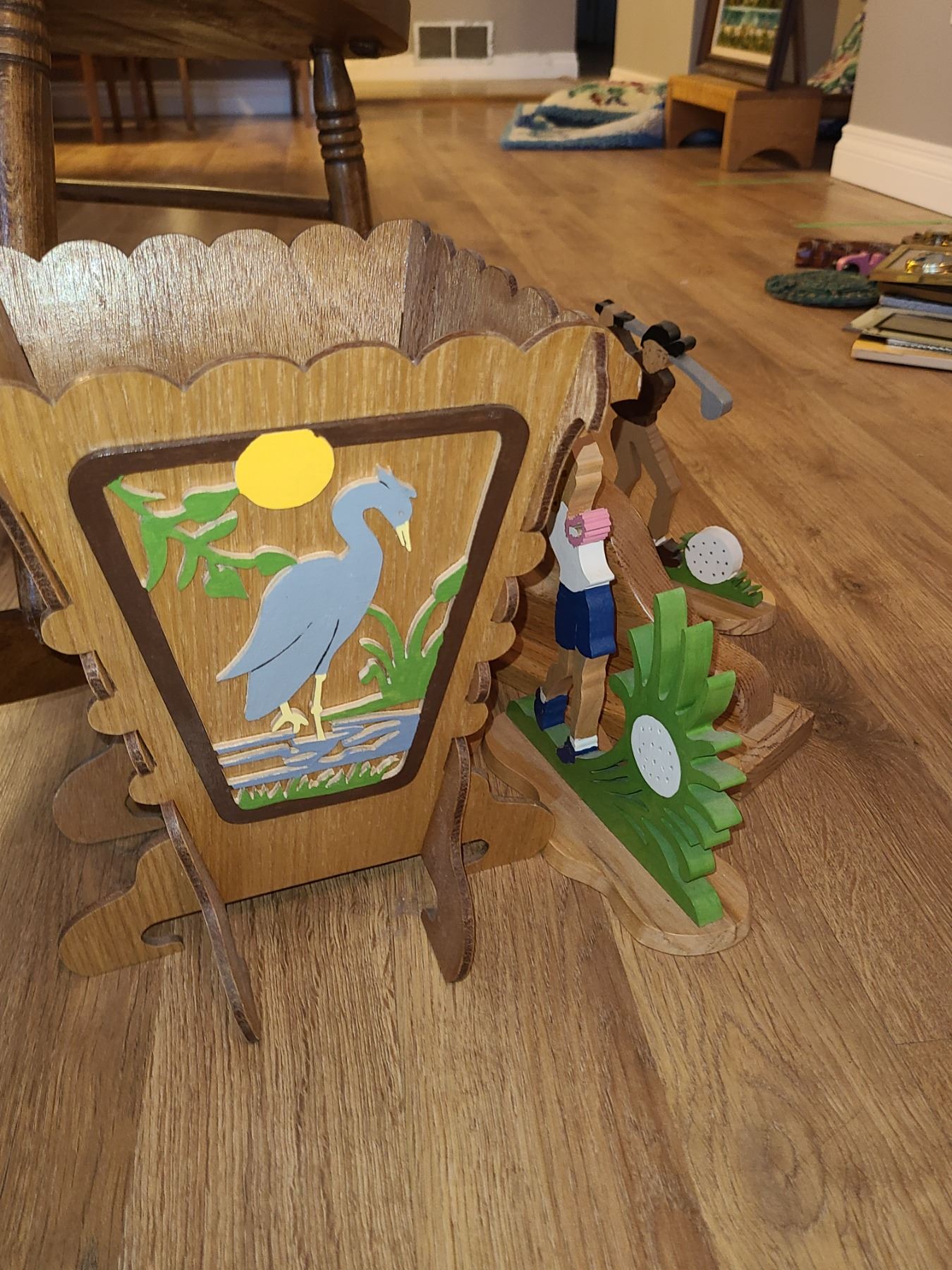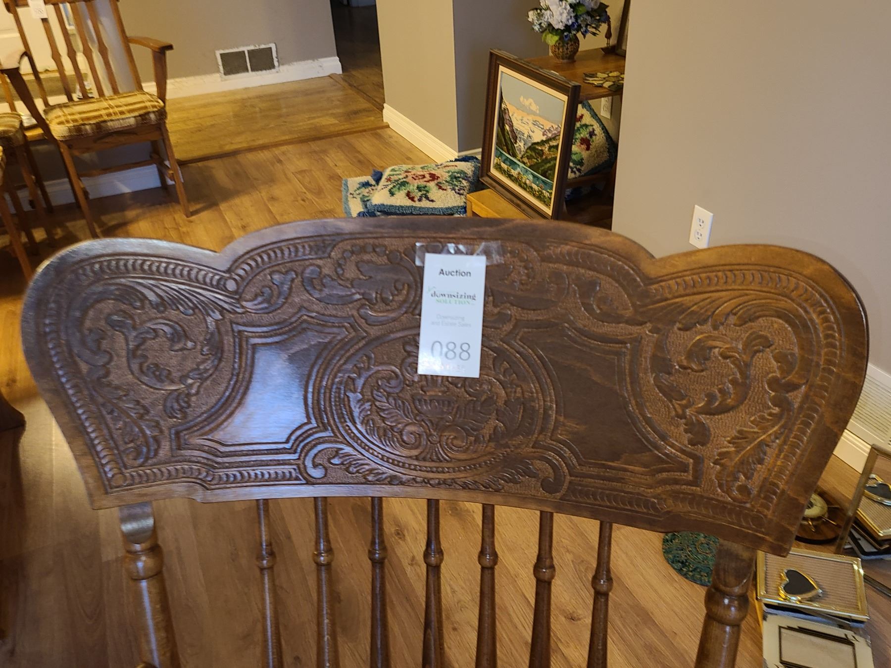 Wood rocking chair 22x29x39 and small items in lot. Pickup at 9 am.