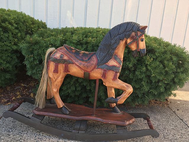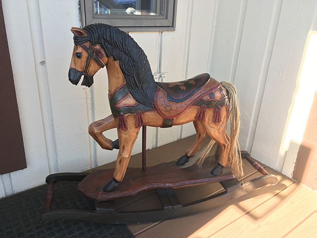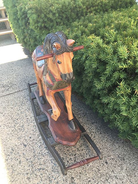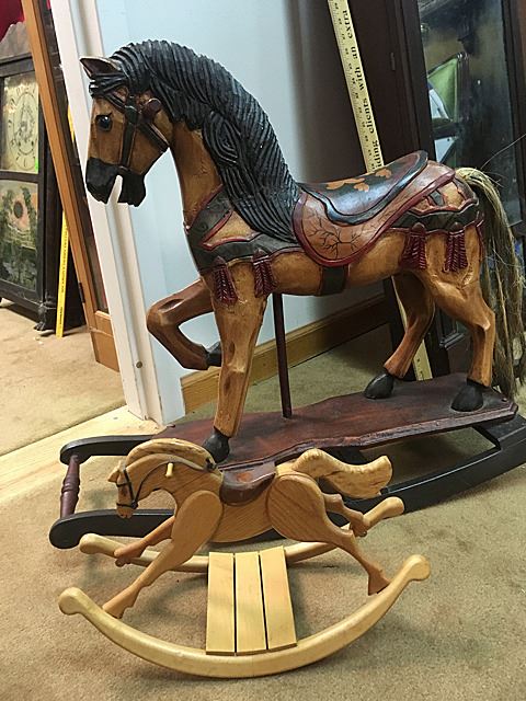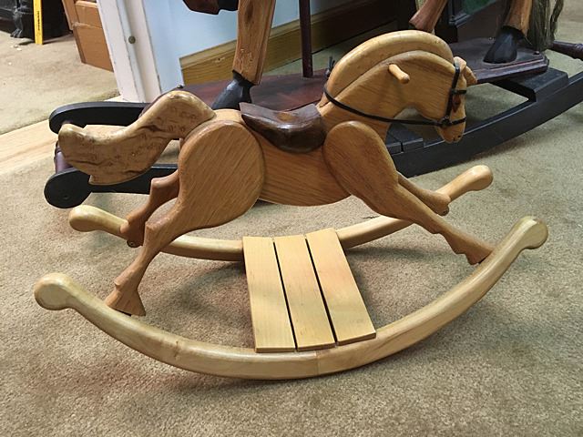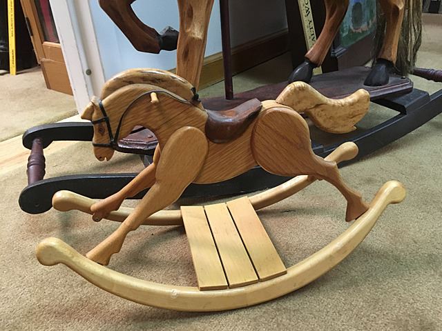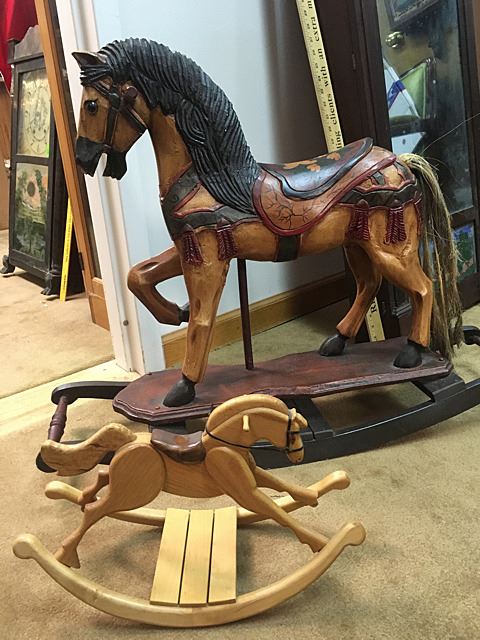 Decorative rocking horse made to look like antique child's rocking horse, small wooden toy rocking horse