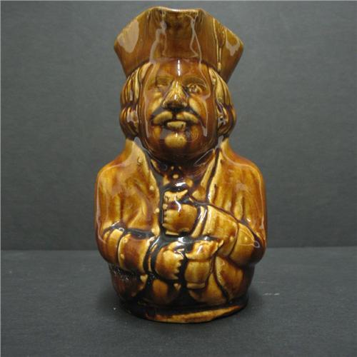 Rockingham toby pitcher; brown glaze on yellow ware; 19th C.; 6" high; no visible defects