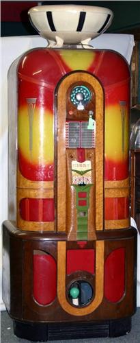 Rockola Commando Jukebox Model 1415, circa 1942. Original cabinet is nice. The inside components are complete, but need to be restored. Bottom center plastic is missing. Glass is flaked in places. This is a good one to leave original, or it has the potential for a nice restoration.