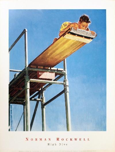 Reference #: ULYY9164 Artist Name: Rockwell, Norman Title: High Dive Medium: Offset Lithograph Edition Size: Unknown Year: Unknown Paper Size: 31.5 x 23.5 inches Image Size: 25 x 20 inches Condition: A-: Near Mint, very light signs of handling