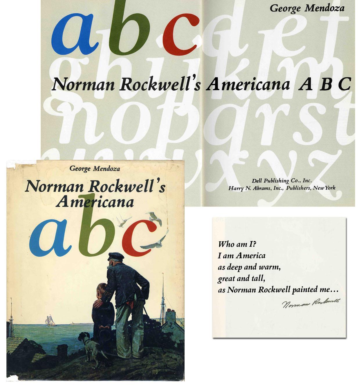 Norman Rockwell Signed ''Norman Rockwell's Americana ABC'' by George Mendoza -- New York: Dell Publishing: 1975 -- With Dustjacket -- Signed in Black Ink to Flyleaf -- Very Good