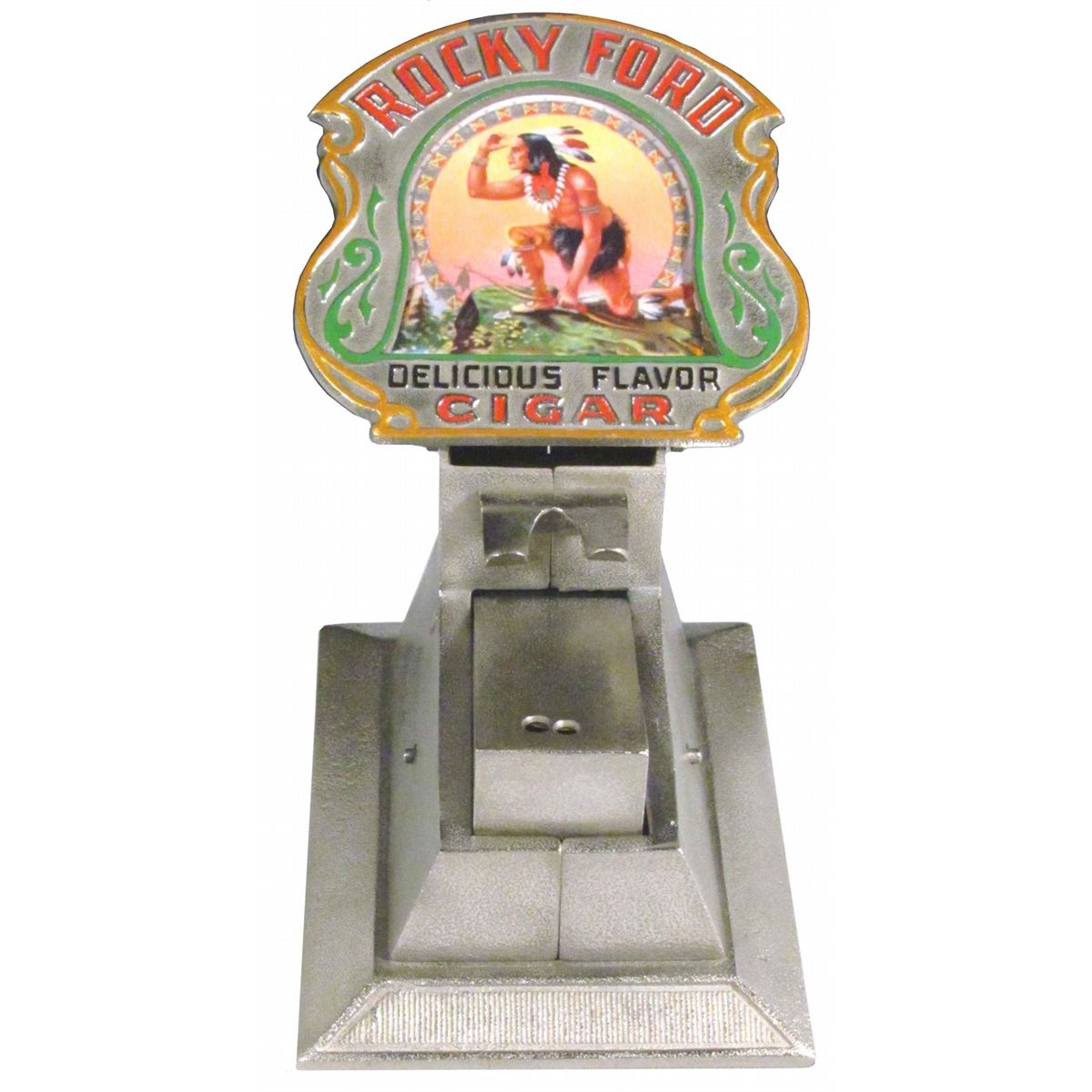 Rocky Ford Cigar Tip Cutter & Match Dispenser. Cast iron. Professionally restored condition. 6 1/4 X 8 1/4 X 8 inches.