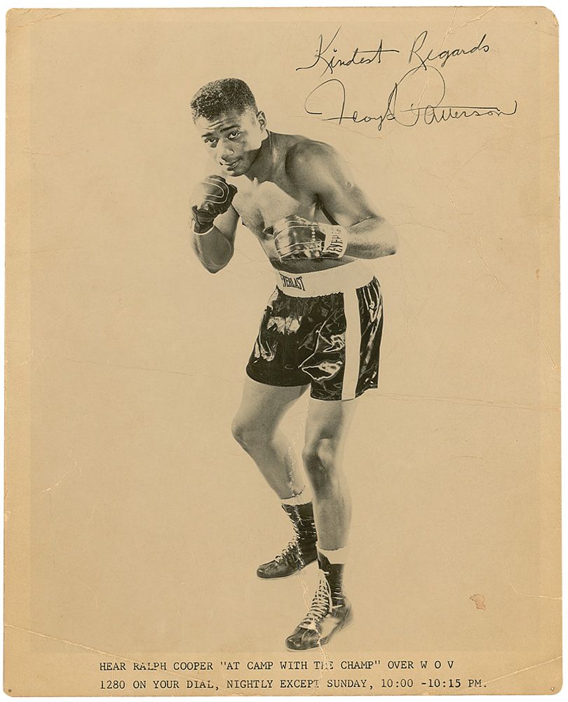 Vintage ballpoint signature, “Rocky Marciano,” on the reverse of a glossy 8 x 10 photo of Floyd Patterson (which bears a facsimile signature). In very good condition, with scattered creasing, several passing through portions of signature, uniform light toning, some scattered light surface loss, and moderate creasing and crazing to image. Consignor notes that the signature was originally acquired at a yard sale in West Dennis, Massachusetts.