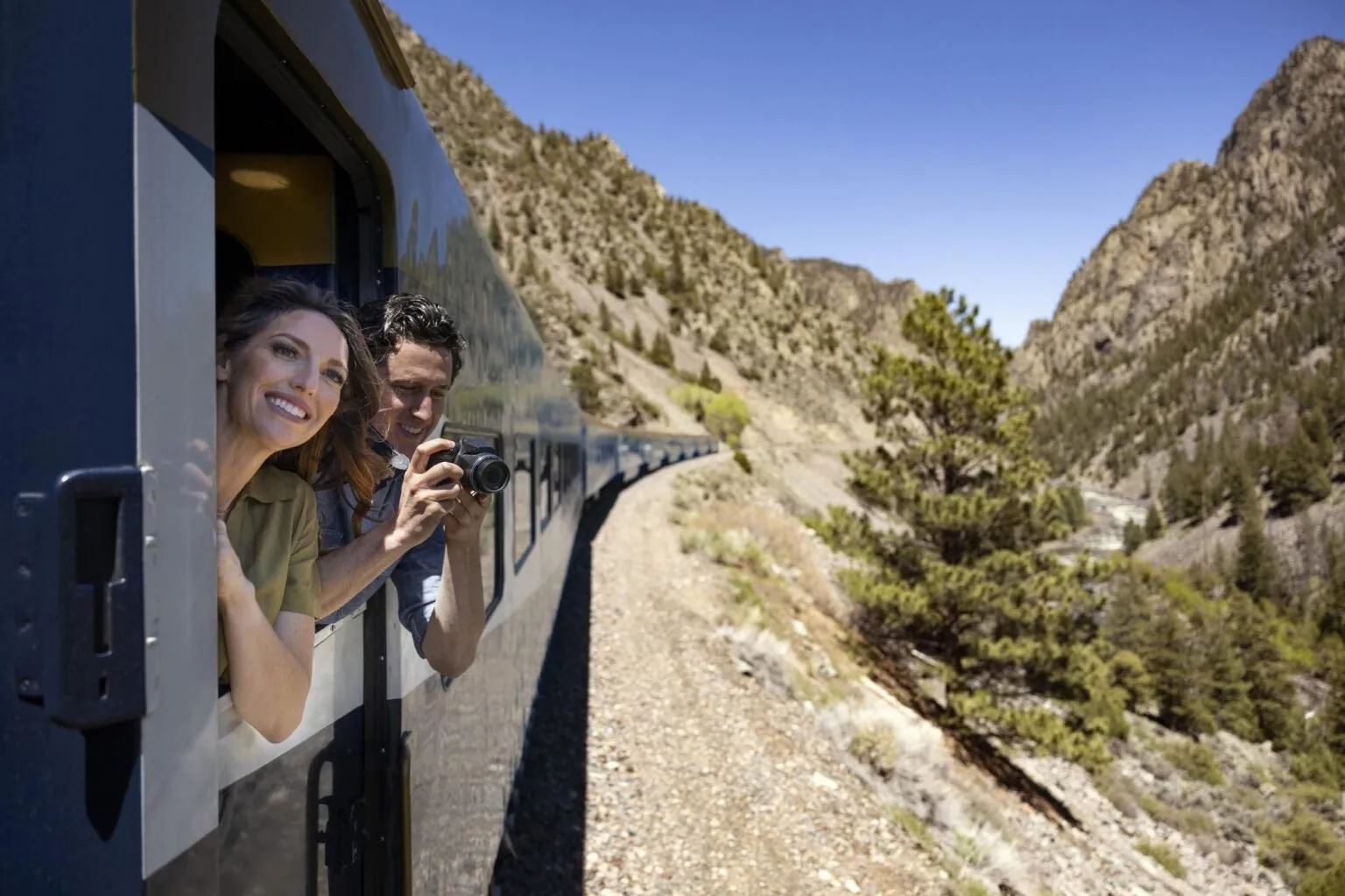 Your adventure begins in Denver, where the city fades into the shadow of snow-capped peaks. The train winds through narrow canyons and along rushing mountain rivers, passing towering evergreens, stone tunnels, and forgotten mining towns that whisper stories of the frontier. Each turn reveals a new wonder – bridges spanning dizzying heights, waterfalls tumbling through forested ravines, and sunlight glittering off the Colorado River.