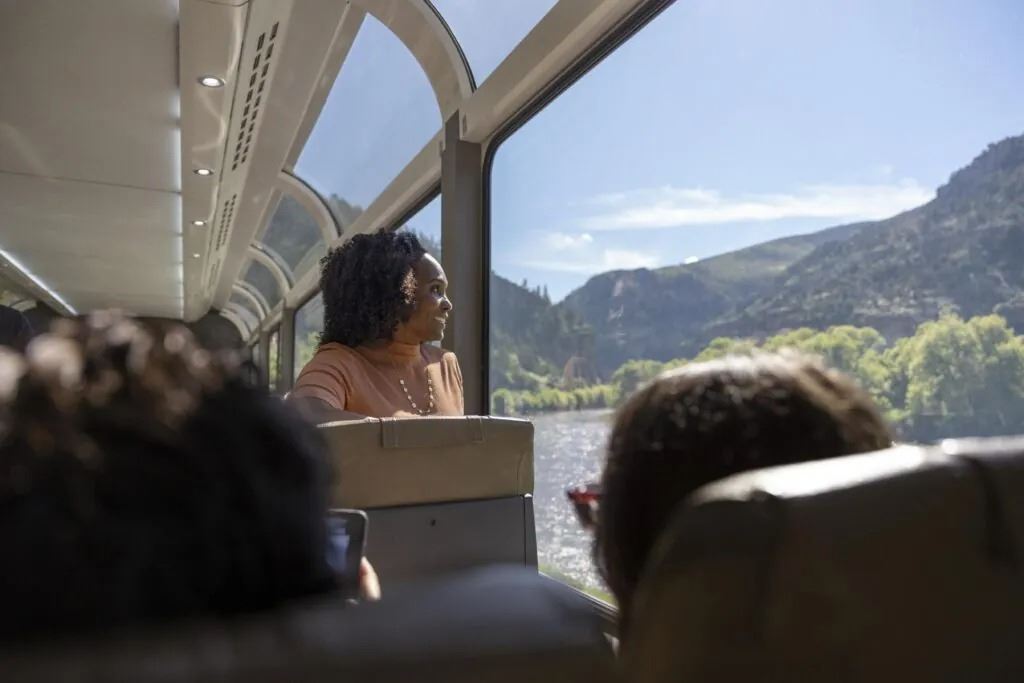 - Scenic daytime journey aboard the Rocky Mountaineer’s Canyon Spirit route (Denver to Moab) in Signature Service