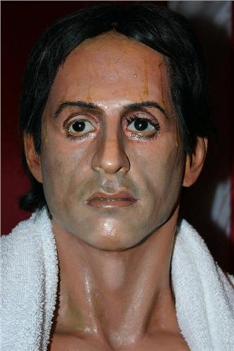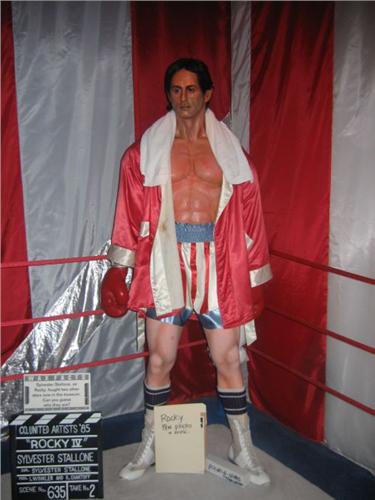 SYLVESTER STALLONE wax figure Rocky IV & set. Includes boxing ring set, ropes, flag. Also includes photos and articles. Includes large color photo of wax figure.