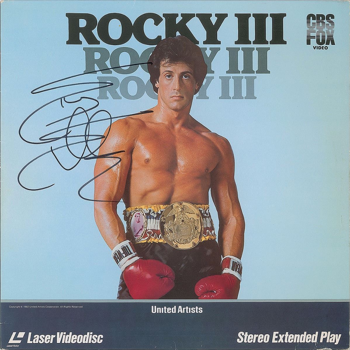 Rocky III laser disc signed on the front in black felt tip by Sylvester Stallone. In fine condition. Disc not included. Accompanied by a certificate of authenticity from PSA/DNA.
