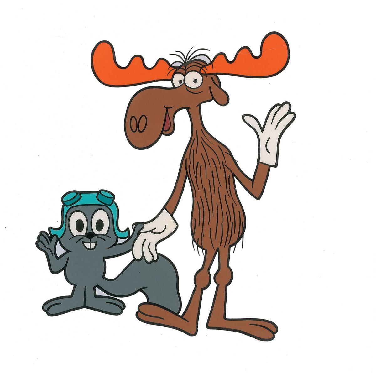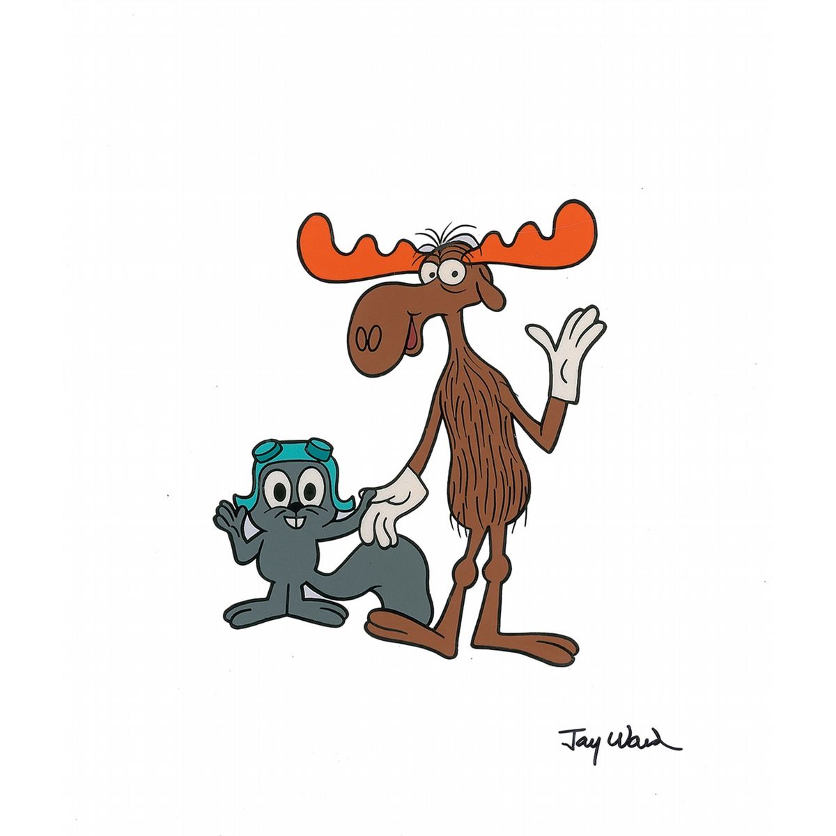(Jay Ward Productions, Circa 1970s) Original hand-painted publicity cel featuring Rocky and Bullwinkle from Rocky and Bullwinkle, signed in black felt tip by creator Jay Ward. Image measures 5.5 x 6.5, with overall dimensions of 10.5 x 12.5. In fine condition.