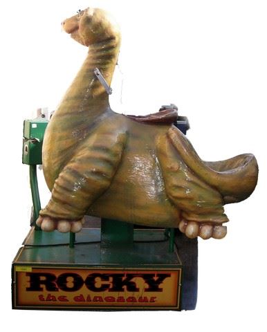 Rocky the Dinosaur coin operated ride. (approx. 67" x 55" x 36")