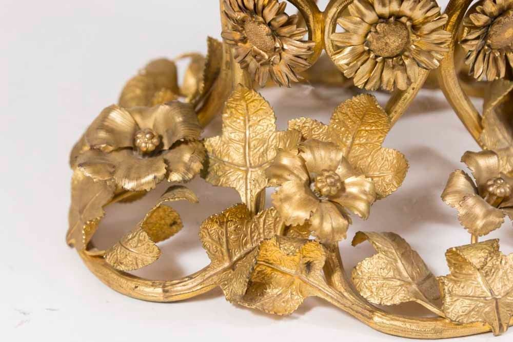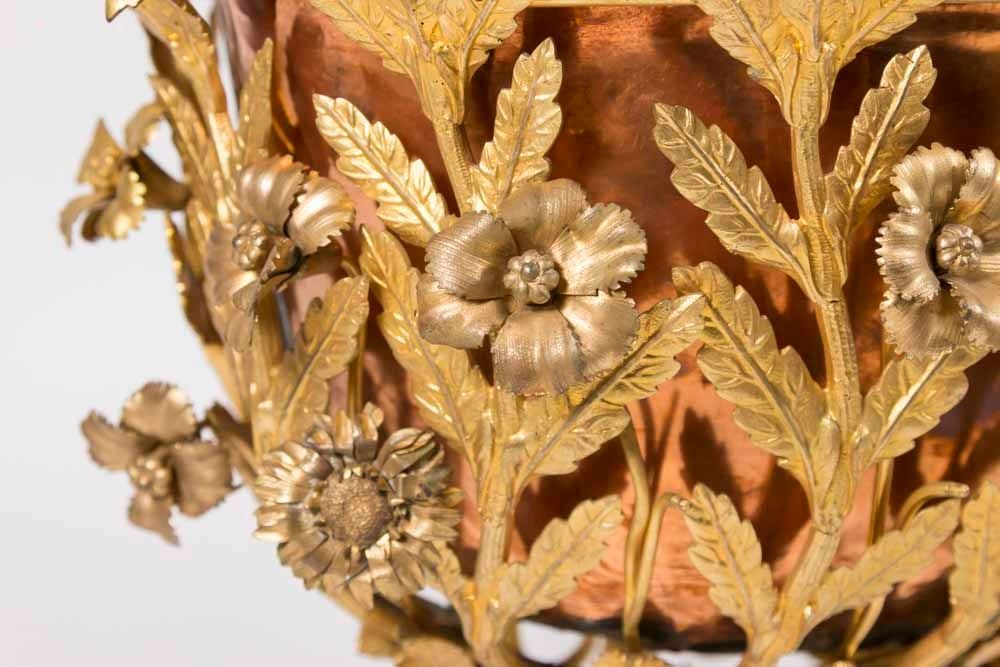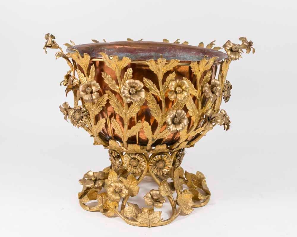 With copper liner. Approx. 13" H. From an Edgewater, NJ estate. 6 flower heads off. Several missing.