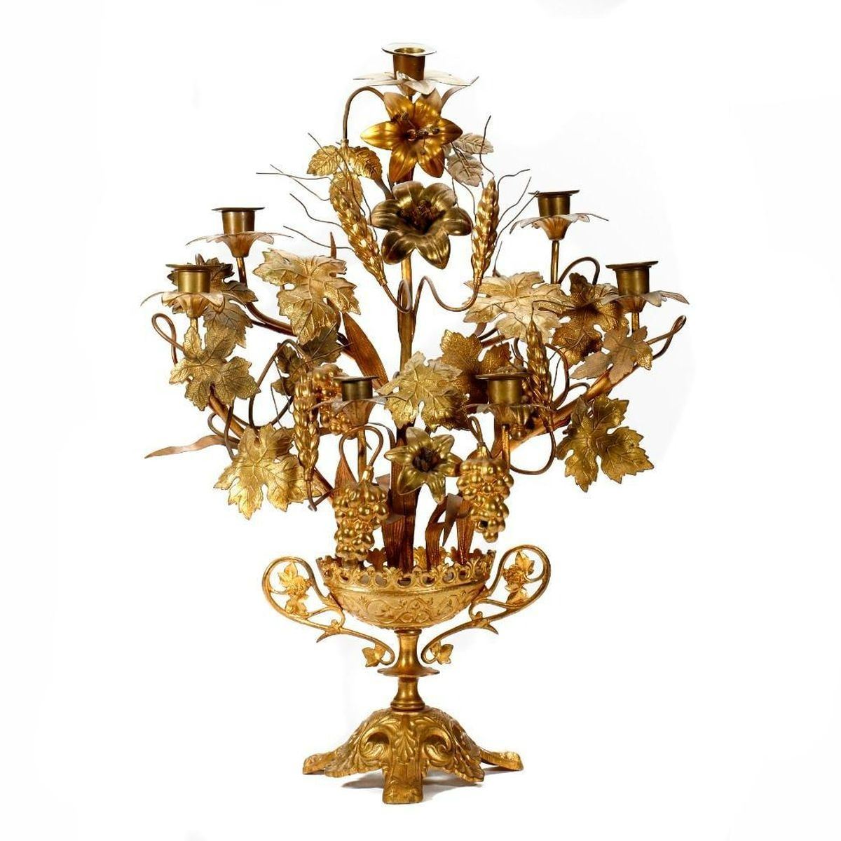 Seven candleholder arms with a grapevine and wheat motif. 23 1/4in. h. x 16 3/4in. w. x 8in. d. Overall good condition; a few candleholders loosened; some wear to gilt.