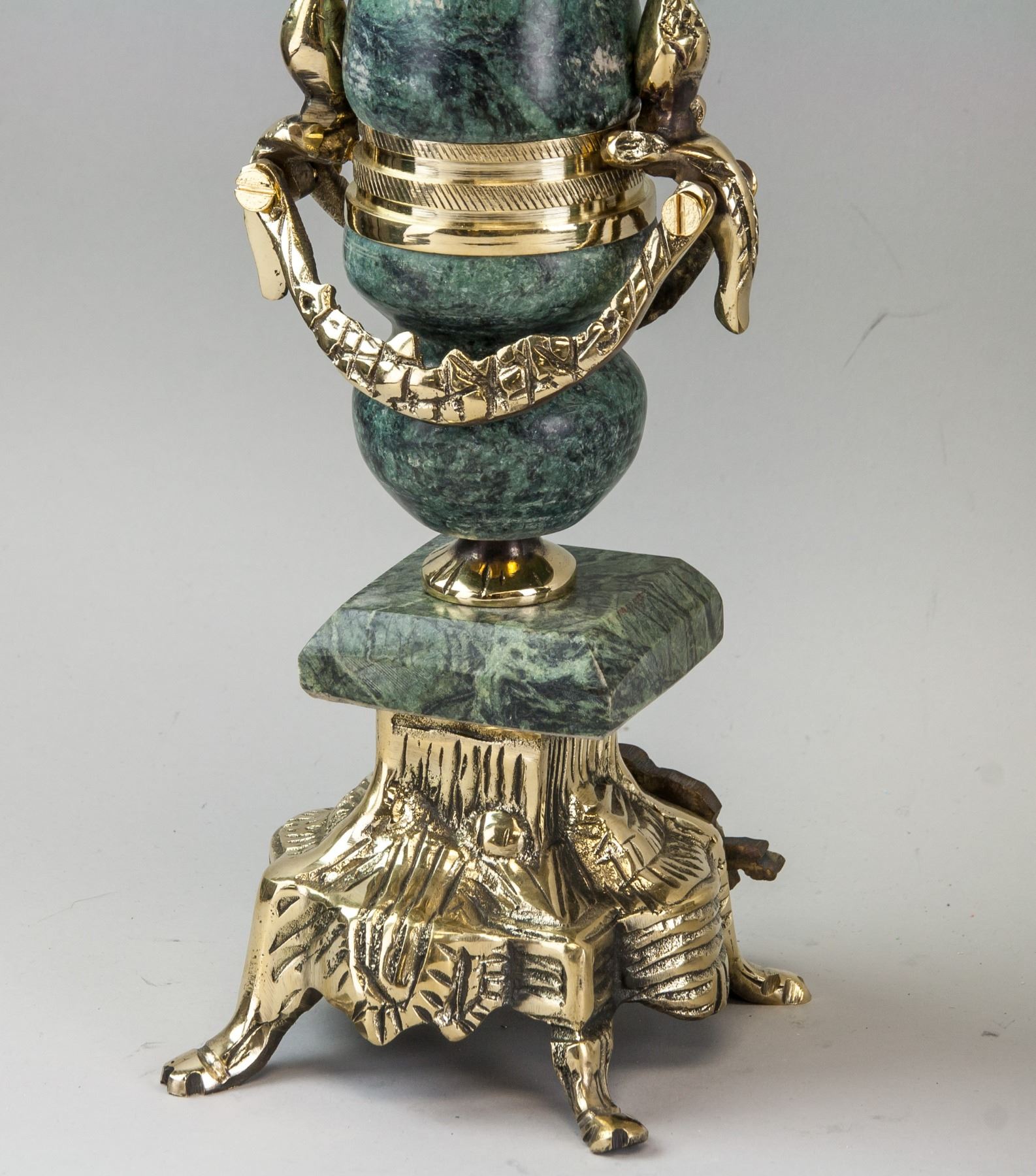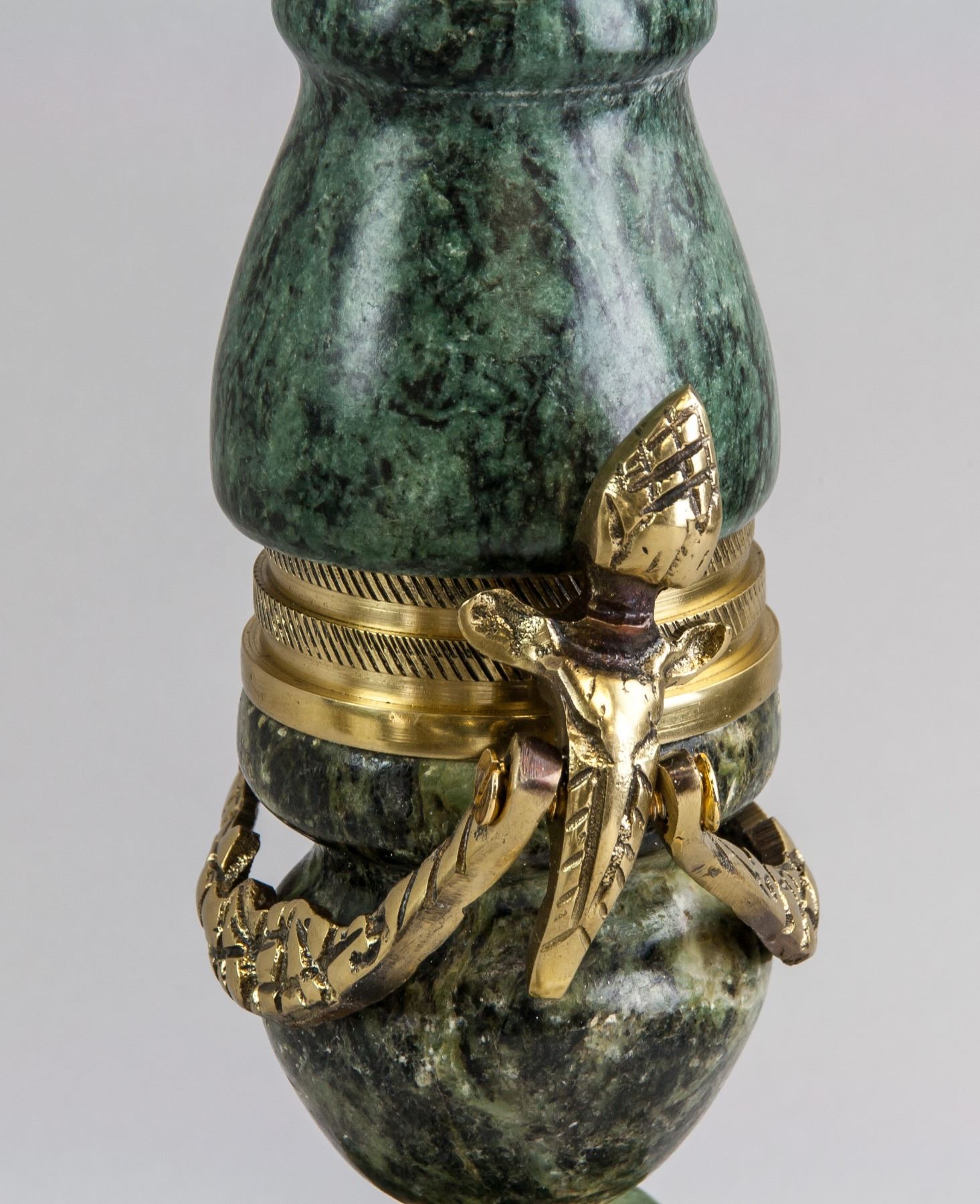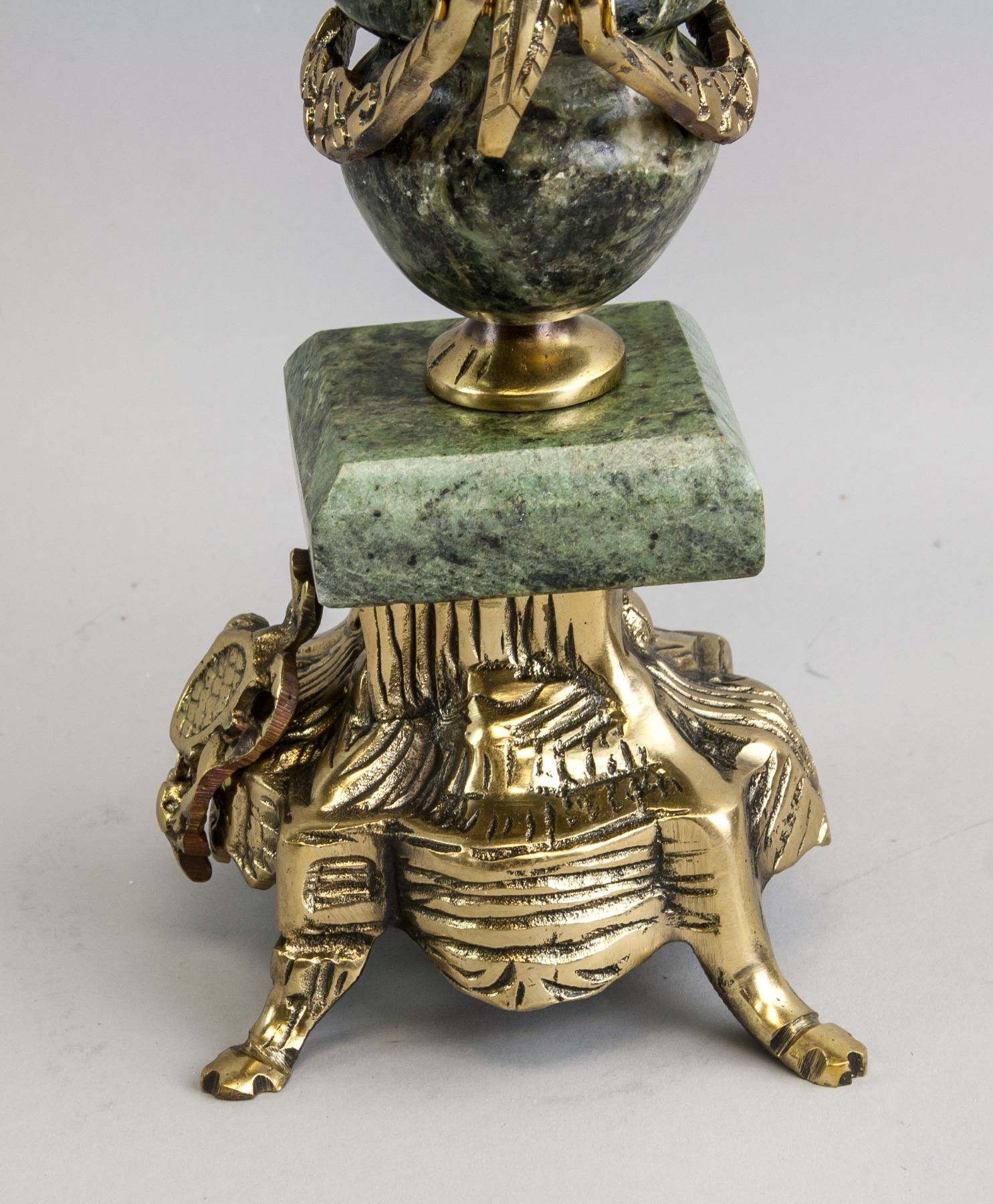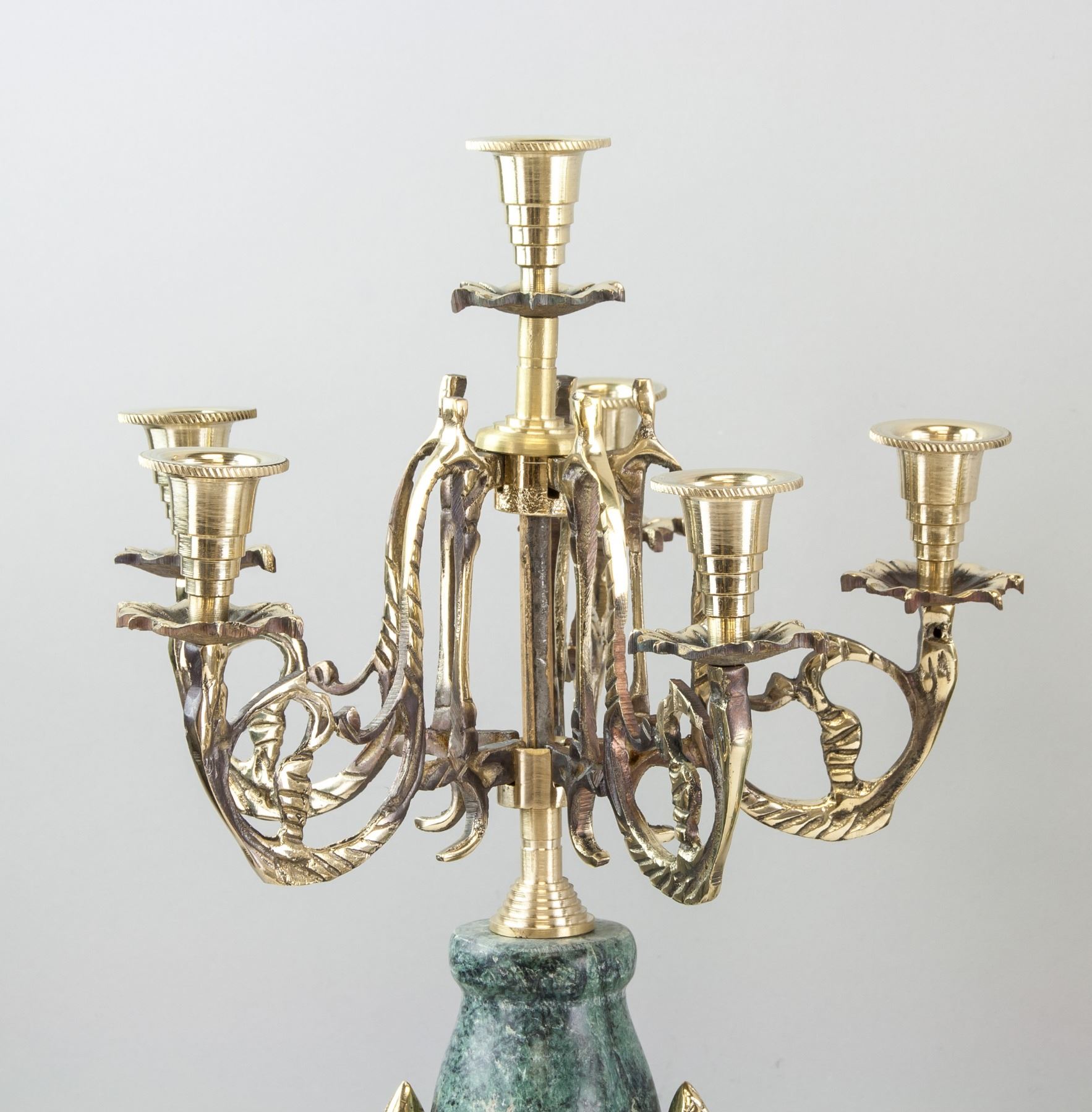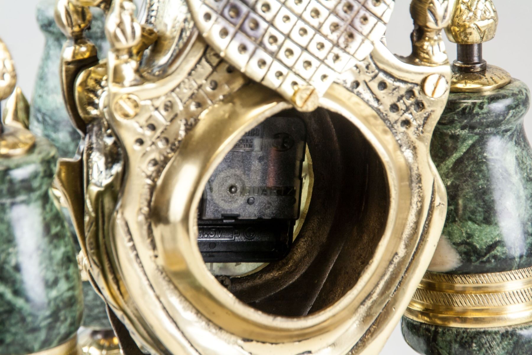 Rococo style table clock and candle stands set, of marble and metal parts, with quartz movement, 49 x 25 cm. Private estate (Connecticut, United States)