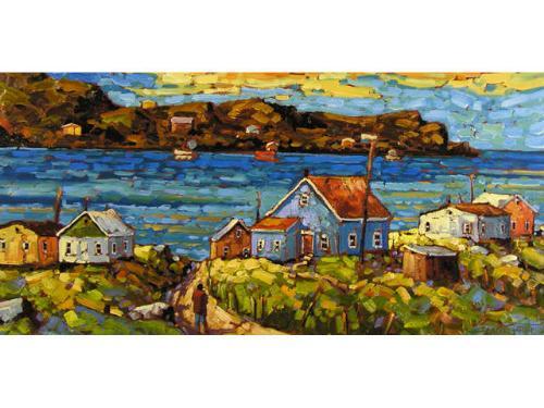 [Canadian b. 1955] EVENING LIGHT, NFLD. Oil on board 15 x 30 ins. Signed & titled