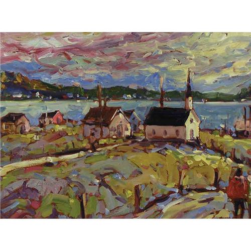 [Canadian b. 1955] EASTERN VILLAGE SCENE Oil on board 12 x 16 in. Signed & tilted.