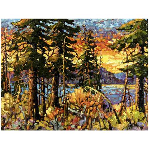 [Canadian b. 1955] THROUGH THE PINES Oil on board 18 x 24 in. Signed & titled.