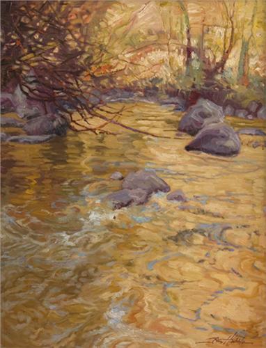 Rod Hubble (b. 1947), New Mexico. River Landscape. 20" x 16" oil on board. Signed lower right. (est $500-1000)