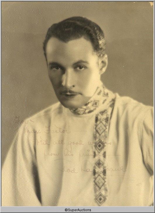 Rod La Rocque from The Max Factor Collection / (1) Photograph of Rod La Rocque with Original Autograph on the Photo / "For Max Factor - With All Good Wishes - From His Friend - Rod La Rocque" / Rod La Rocque was a tall, dashing matinee idol of the Silent Screen. So great was his popularity in the 1920's that his wedding to Velma Banky in 1927 was turned into a Hollywood Spectacle by Samuel Goldwyn / This Picture Once Hung in the Max Factor Studio / {12" L x 15" H in Frame}