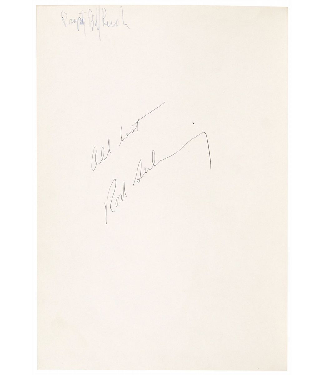 62. All Lots sold by RR Auction are accompanied by a Certificate of Authenticity. On any lot presented with a Certificate of Authenticity (“COA”) issued by RR Auction, that warranty insures only to the original Bidder (as shown in Auctioneer’s records) “Bidder”. Bidder may not transfer the rights afforded under the COA and it is null and void when Bidder transfers or attempts to transfer the lot. The COA warranty is valid from date of the auction in which Bidder was awarded the lot to five (5) years after its purchase. The COA warranty is valid as to its attribution to the person or entity described or to the lot’s usage. The Bidder as well as their heirs, successors and assigns is also given an unconditional lifetime guaranteed that allows the present owner of any lot purchased through RR Auction the right to consign with RR Auction. When the lot is accompanied by a Certificate of Authenticity (or its equivalent) from a third-party authentication provider, buyer has no right of return. On lots not accompanied by third-party authentication or under extremely limited circumstances not including authenticity (e.g. gross cataloging error), a Bidder who did not bid from the floor may request Auctioneer to evaluate voiding a sale; such request must be made in writing detailing the alleged gross error, and submission of the lot to Auctioneer must be pre-approved by Auctioneer. A Bidder must notify the appropriate department head in writing of the Bidder’s request within three (3) days of the non-floor bidder’s receipt of the lot. Any lot that is to be evaluated for return must be received at the office of RR Auction within 35 days after Auction. AFTER THAT 35 DAY PERIOD, NO LOT MAY BE RETURNED FOR ANY REASONS. Lots returned must be in the same condition as when sold and must include any Certificate of Authenticity. If a bidder wishes to challenge the Letter of Authenticity within the five (5) year warranty period, Bidder must present with the claim, authoritative written evidence that the lot is not authentic as determined by a known expert in the field. If Auctioneer concurs that the lot is not as represented, Bidder shall be refunded their purchase price. If the Auctioneer denies the claim, the Bidder may file the dispute with the American Arbitration Association with locale in Boston Massachusetts, Suffolk County, before a single selected Arbitrator selected by the American Arbitration Association. The American Arbitration Association arbitration shall be conducted under the provisions of the Federal Arbitration Act and the Bidder consents to jurisdiction in The Commonwealth of Massachusetts. The challenge to Authenticity must be brought within one (1) year if the Auctioneer denies the claim. After one (1) year, the Bidder hereby releases and discharges RR Auction from any and all legal, equitable, administrative and/or other claims, counterclaims, demands, setoffs, defenses, accounts, suits, debts, dues, actions, causes of action, proceedings, arbitrations, damages, executions, judgments, findings, controversies and disputes, whether known or unknown or suspected or unsuspected, whether in law or equity, that the Bidder have or may have had against RR Auction arising from or relating to any claim whatsoever. Specifically, the COA provided by RR Auction, does not provide for incidental or consequential damages or other indirect damages. Any lot sold with a certificate of authenticity or other warranty from an entity other than Auctioneer is subject to such issuing entity’s rules and such conditions are the sole remedy afforded to Bidder. For information as to third party authentication warranties the bidder is directed to contact RR Auction.