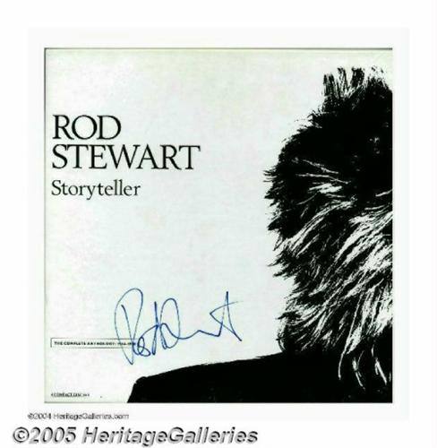 <B>Rod Stewart Signed "Storyteller" Box Set (1990).</B></I> Impressive four-CD box set titled "Storyteller," featuring a complete anthology of Stewart's musical works from 1964 through 1990, boldly signed by the singer across the set cover in blue felt tip. Measures 12 1/2" by 12 1/2" and is in fine condition. <I>With COA from PSA/DNA.</B></I>