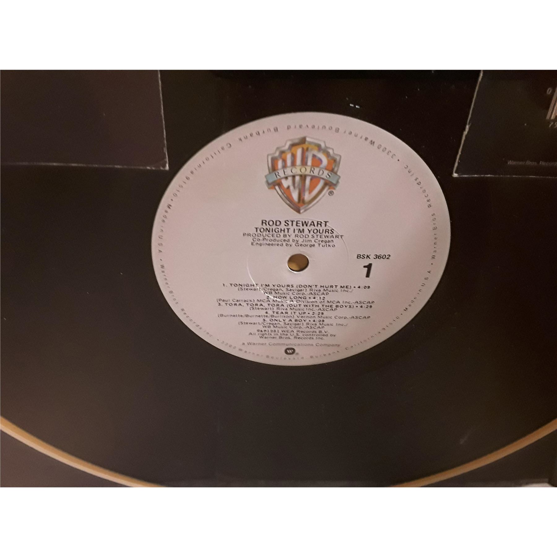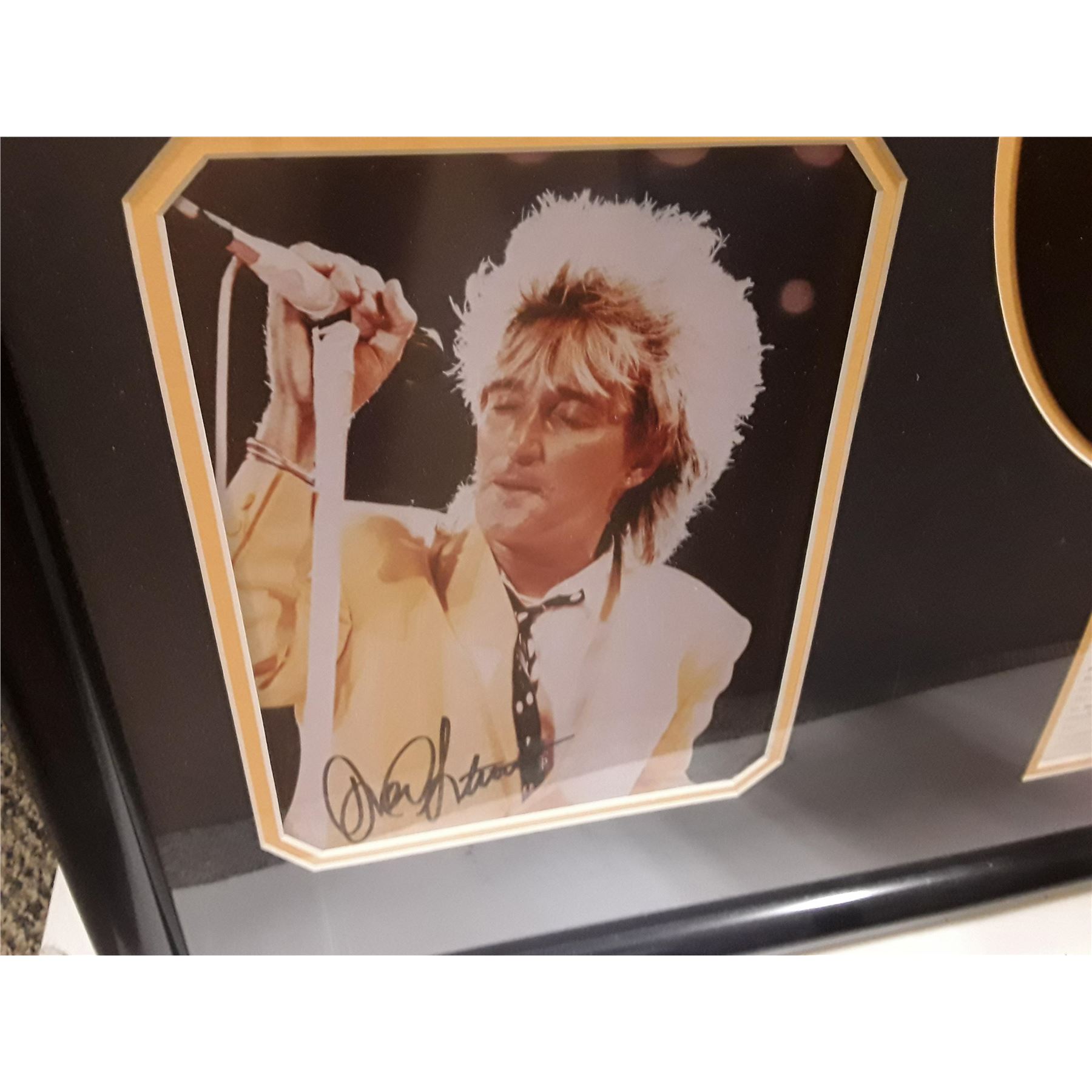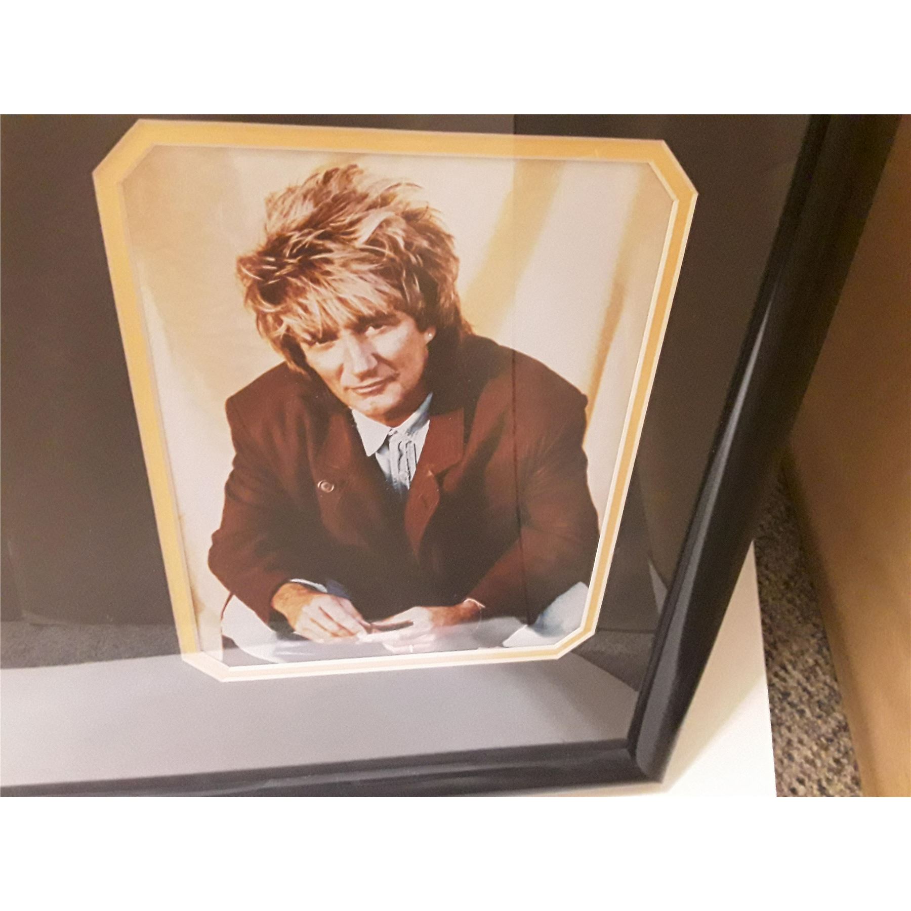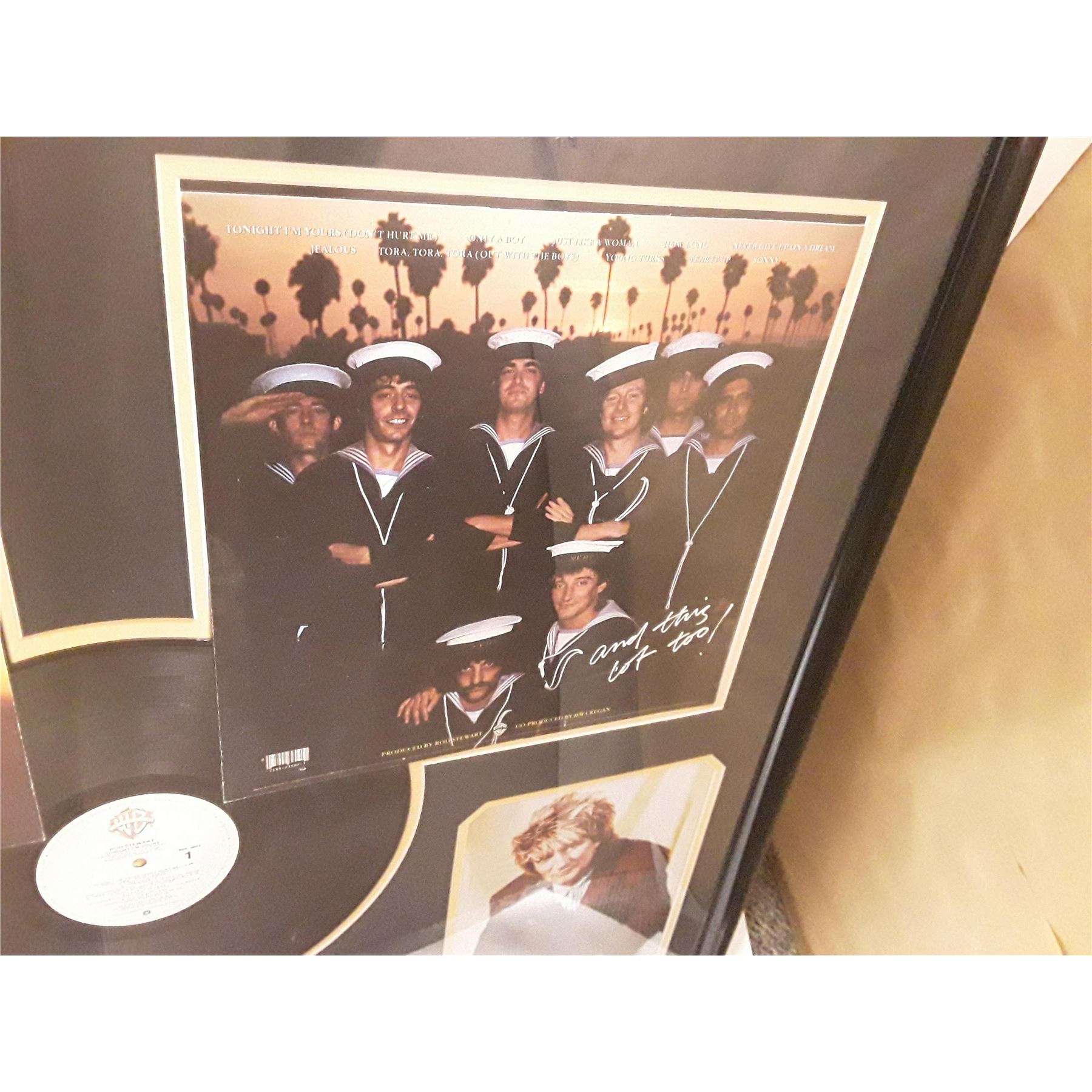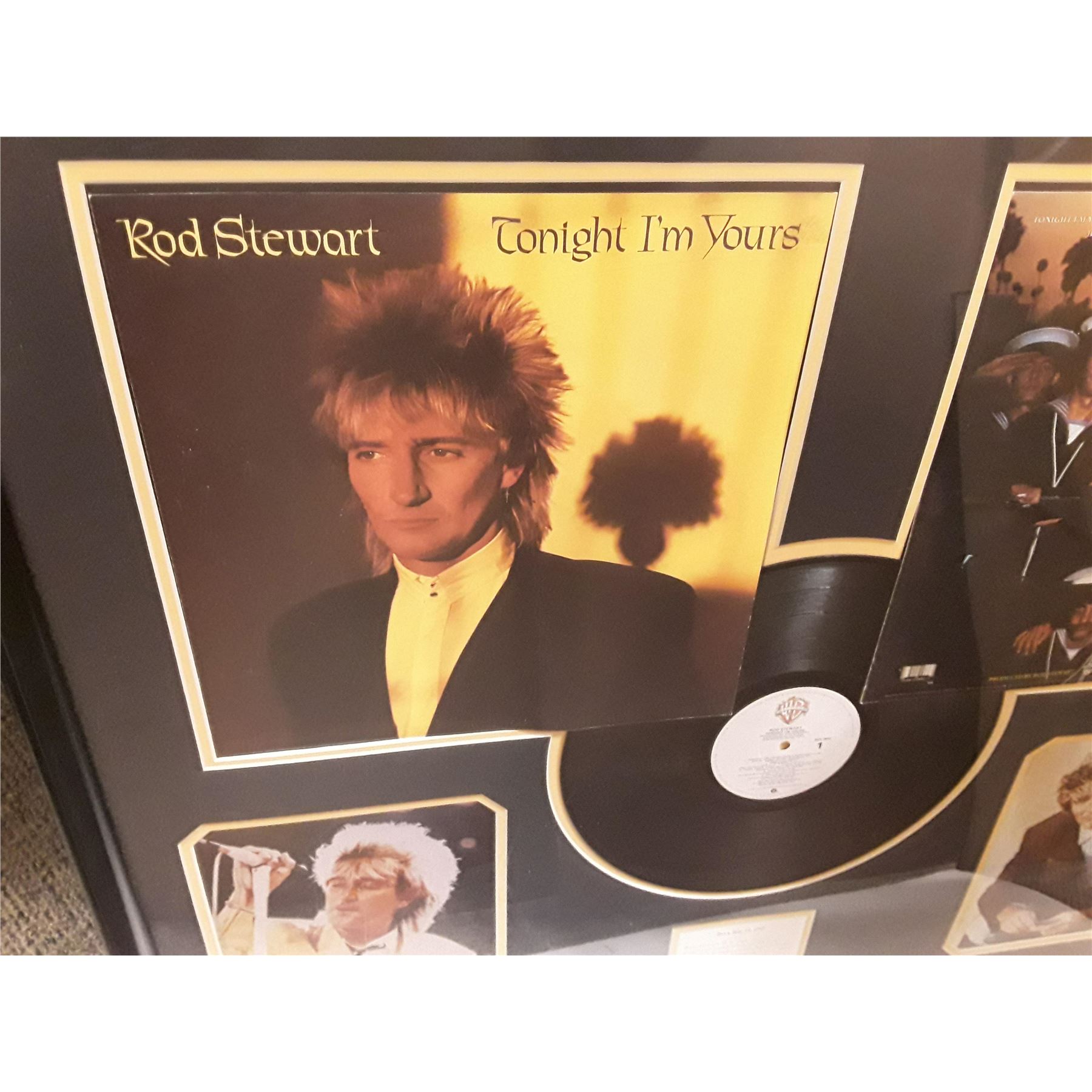 Framed record and album cover of Rod Stewart's 'Tonight I'm Yours'. Tracks include "Only A Boy", "Just Like A Woman", "How Long", and many more. This beautiful piece is also signed by Rod Stewart, and included is the certificate of authenticity to verify the autograph. This has been custom framed and matted using acid free matting.