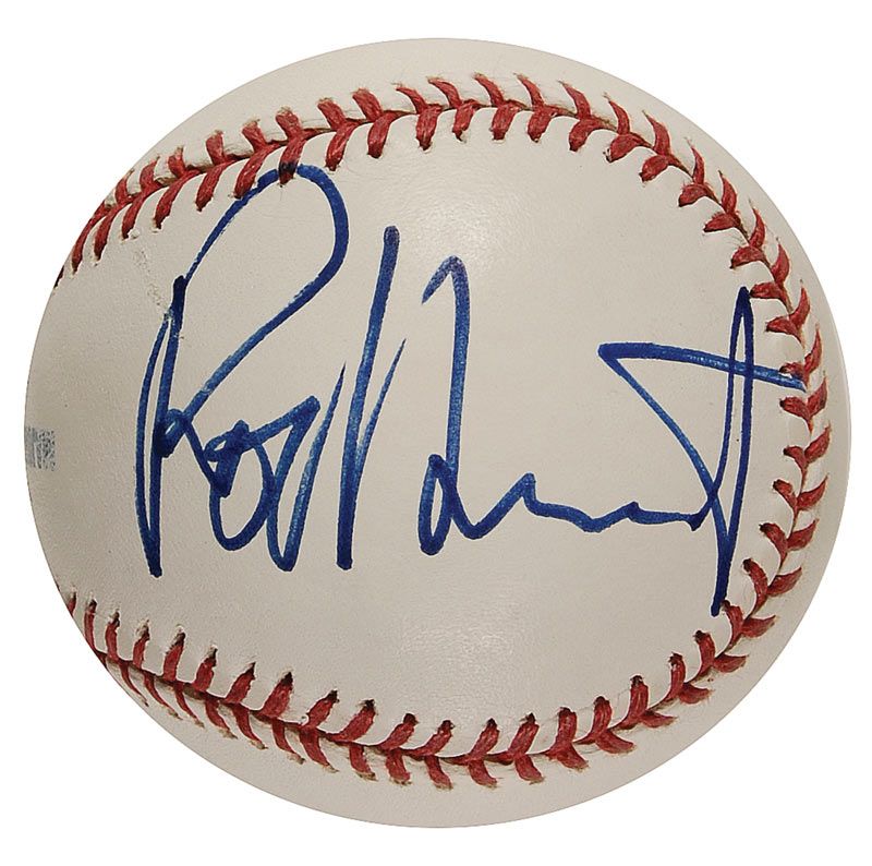 Official Rawlings Major League baseball signed in blue felt tip on a side panel. In fine condition.