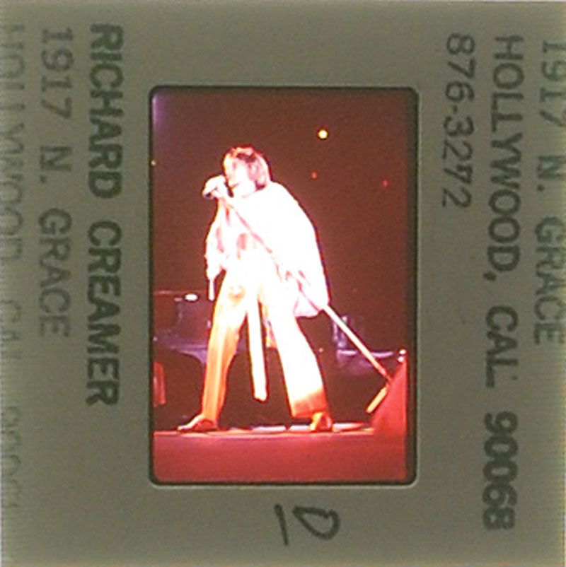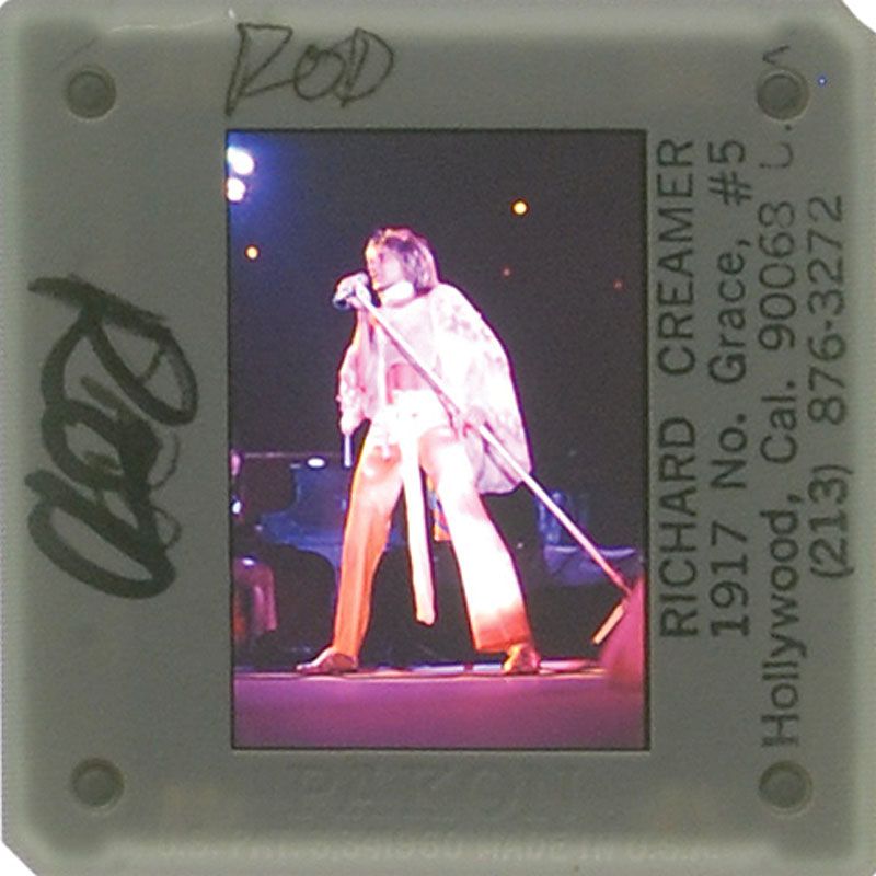 Three original unsigned color slides of Stewart performing, each image measuring 1.25 x 1 inside a 2 x 2 cardboard or plastic mount. Mounts bear ink and pencil notations, and stamps from the photographer, Richard Creamer. In overall fine condition. Provenance: Richard Creamer Estate. Creamer was a famous Rolling Stone photographer very active and well known in the 1970s Los Angeles Rock scene. The collection of Creamer photos offered in this auction were kept in his personal collection and several appeared in magazines.