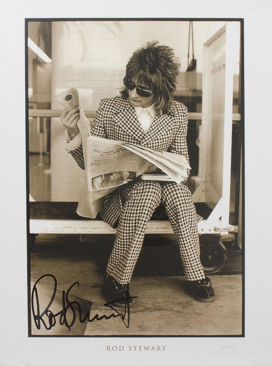 Limited edition 18 x 24 print showing Stewart reading a newspaper, numbered 149/200, prominently signed in black felt tip. Rolled and in fine condition.