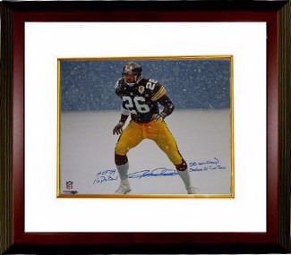 Rod Woodson was a key member of the Baltimore Ravens Super Bowl XXXV championship season. He was an inductee of the Class of 2009 of the Pro Football Hall of Fame in Canton, Ohio on August 8, 2009. Rod Woodson has hand autographed this Pittsburgh Steelers 16X20 Photo with 4 stats including: HOF 09, 11xPro Bowl, SB XXXV Champ & Steelers All Time inscription. MAB Hologram and Certificate of Authenticity from Athlon Sports. Custom White Mat and Premium Mahogany Color Framed as shown.