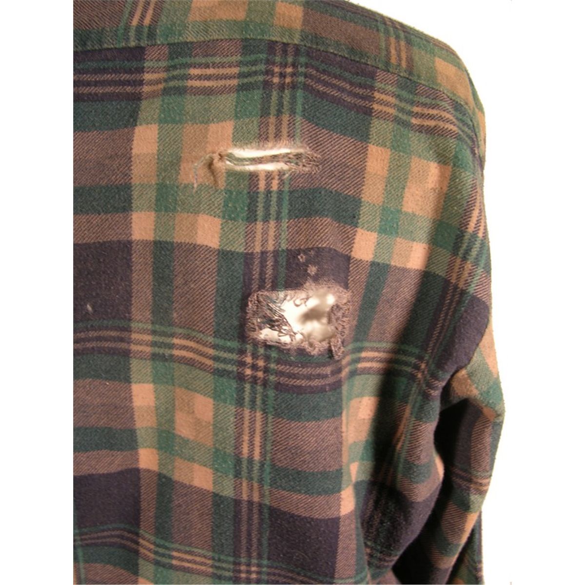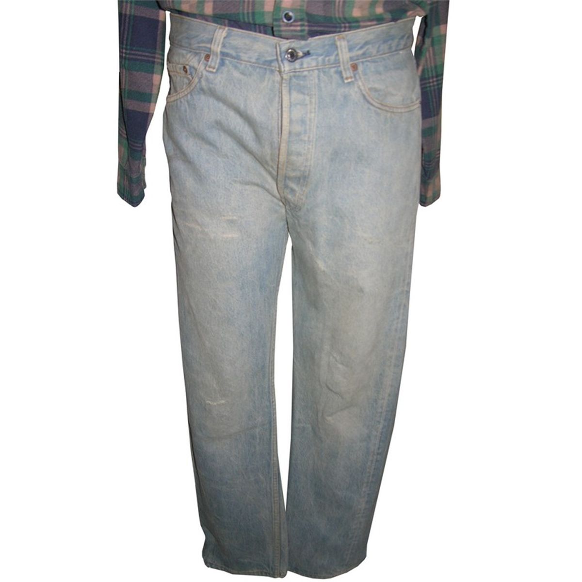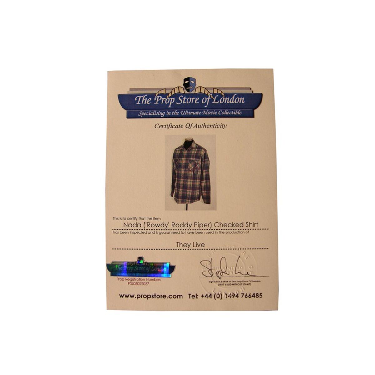 Flannel shirt and faded blue jeans worn by Roddy Piper in the classic sci-fi action film They Live. This is the costume Piper wears in the film's famous fight scene, wherein Piper challenges an opponent to "put on the glasses". This lot further includes a pair of sunglasses which are not screen used or part of the production but are included so as to complete the ensemble. A certificate of authenticity is included.