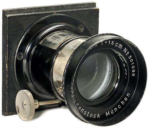 Rodenstock "Monar 3,5/15 cm", c. 1910 Rodenstock, Munich. No. 501089, special lens for artistic portrait photography, with rack-and-pinion focusing, waterhouse stop, with lens board. - One of the rarest Rodenstock lenses ever!<Br>