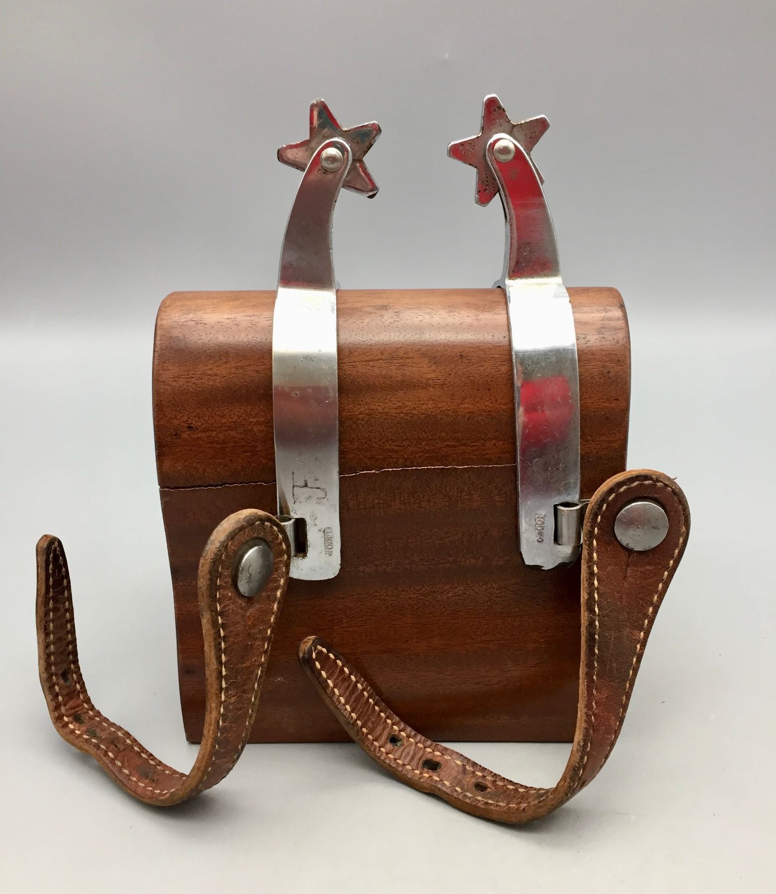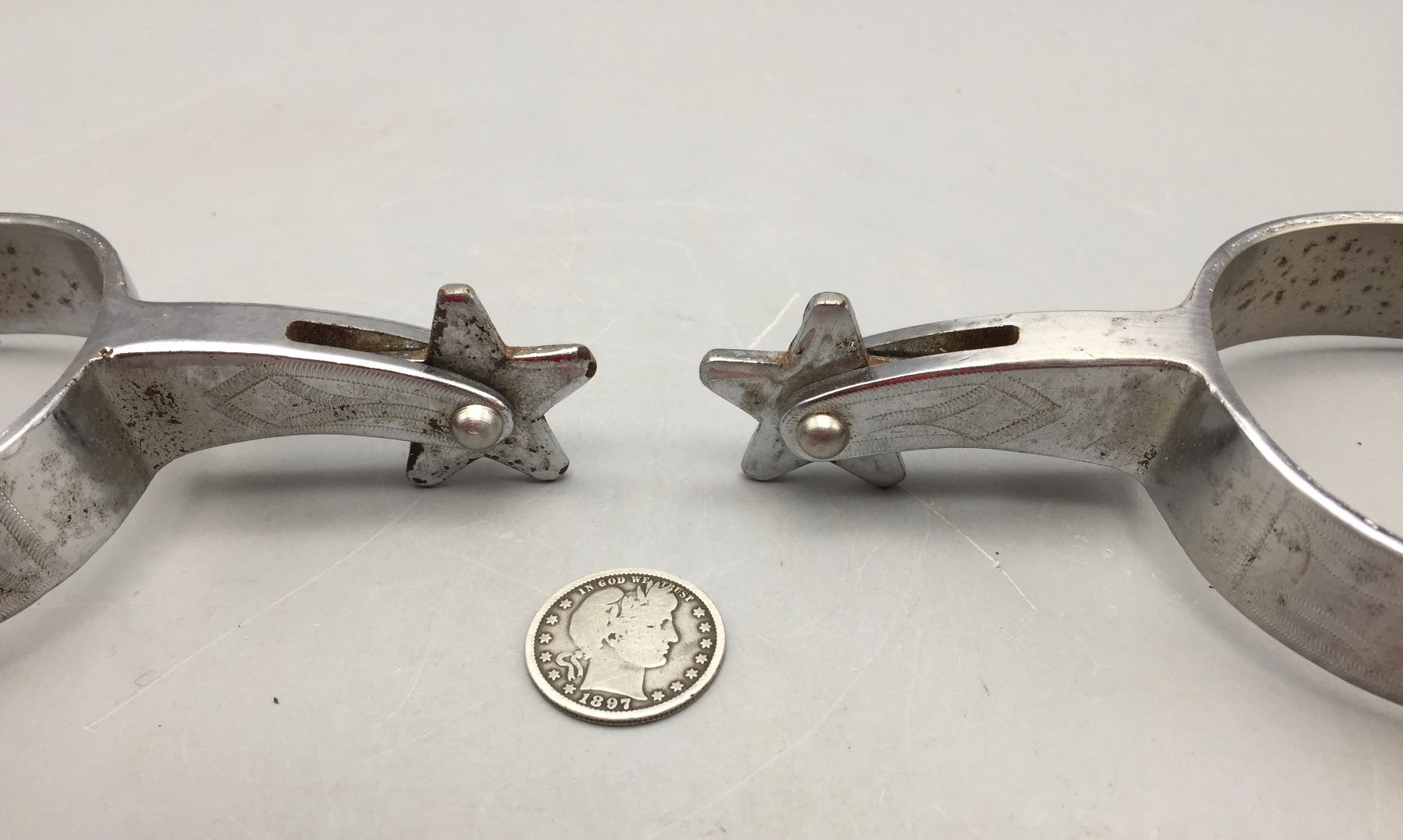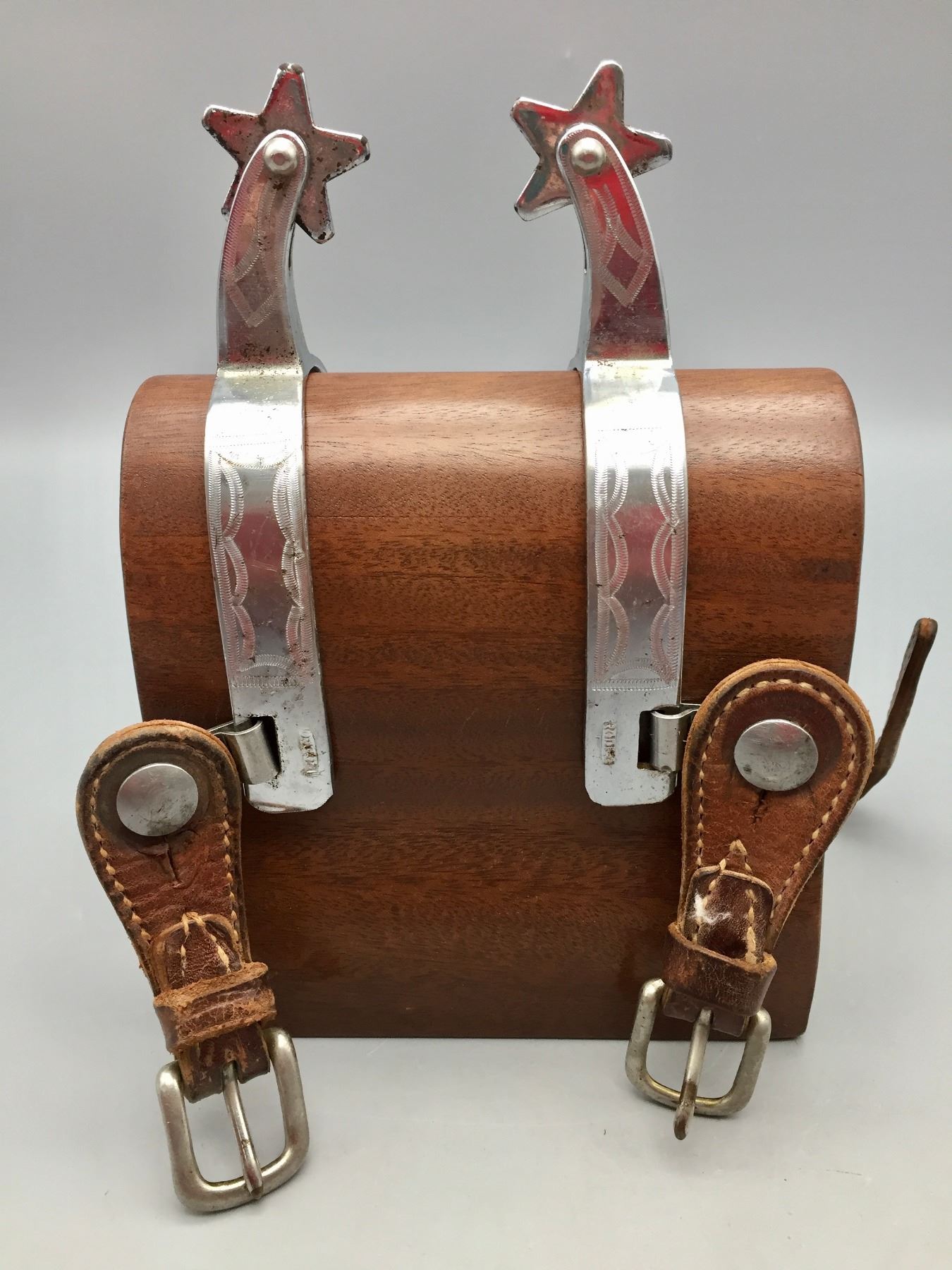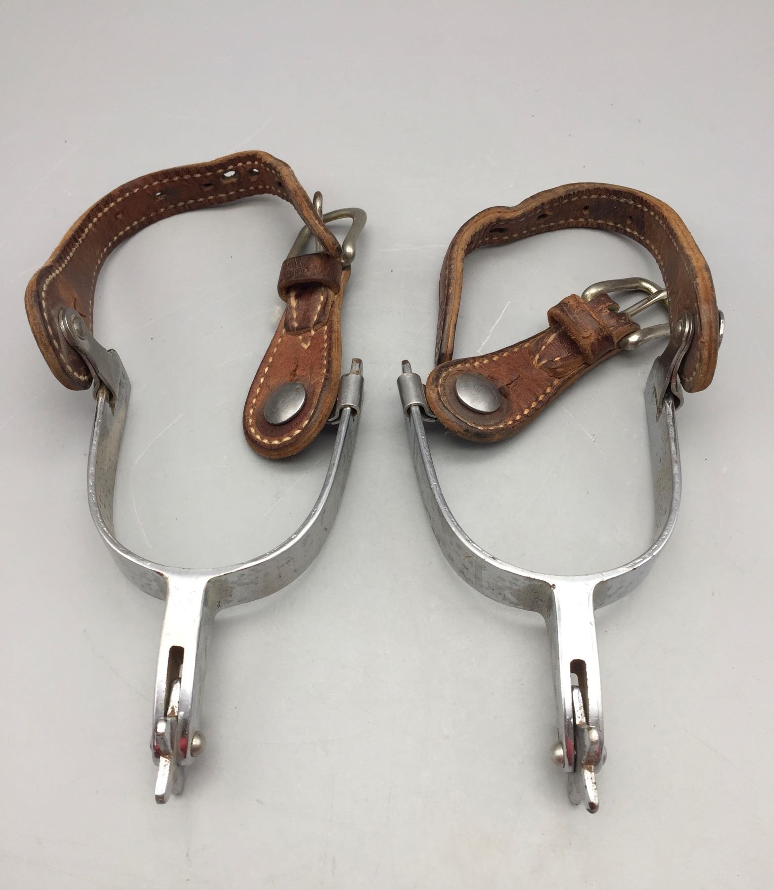 Description: Presented for sale in this lot are a pair of engraved “rodeo” spurs with simple brown leather strap. Maker: Kelly made these “Rodeo” brand spurs. Approx. Age: Vintage. Size: 3” heel, 2-1/4” shank, 3/4” band. Condition: Good for their age, normal wear expected. Please look closely at the pictures - they are an important part of our description. Shipping: There will be a $5 handling / packaging fee for shipping this lot. The actual cost of postage will be added on top of that.