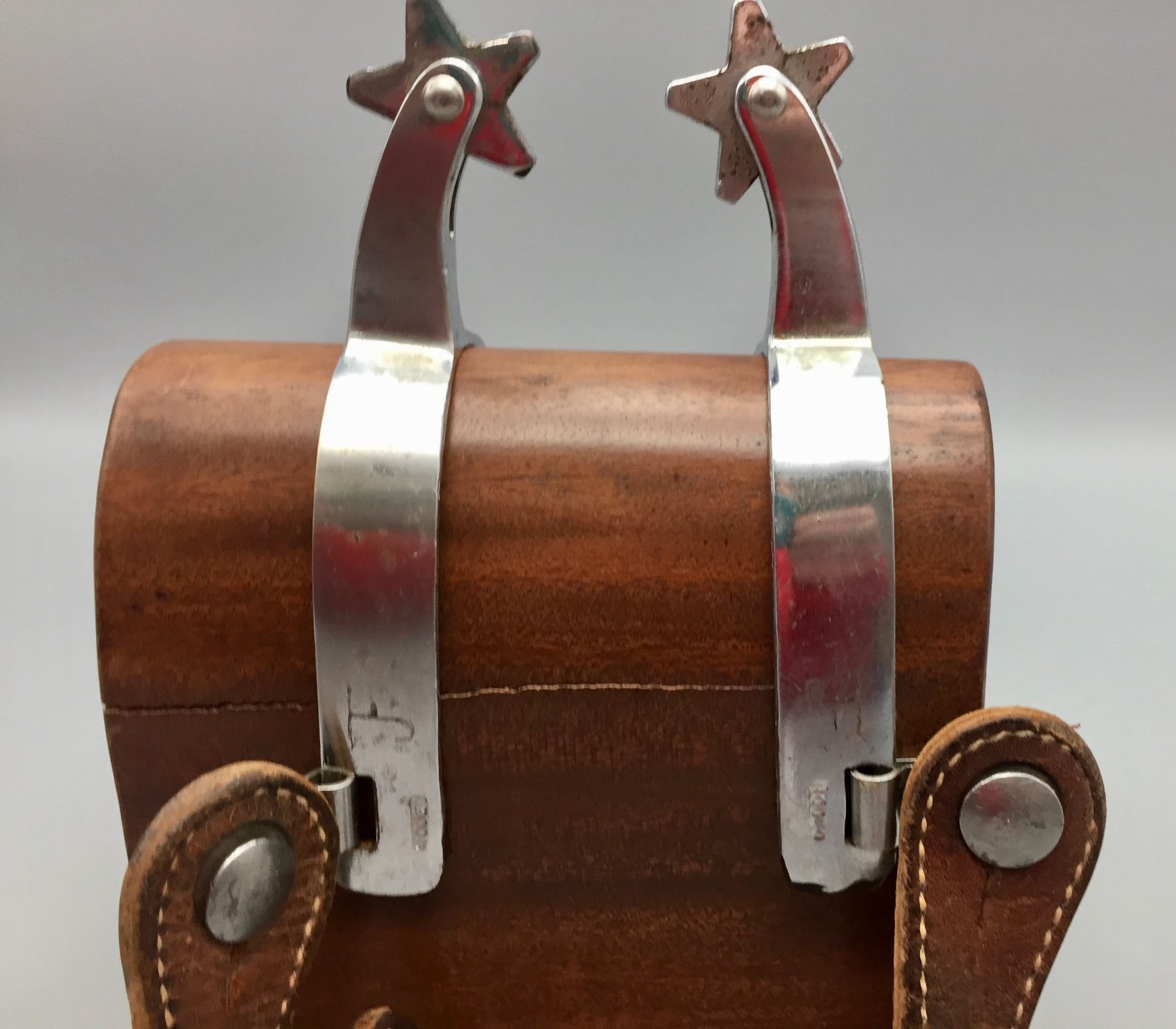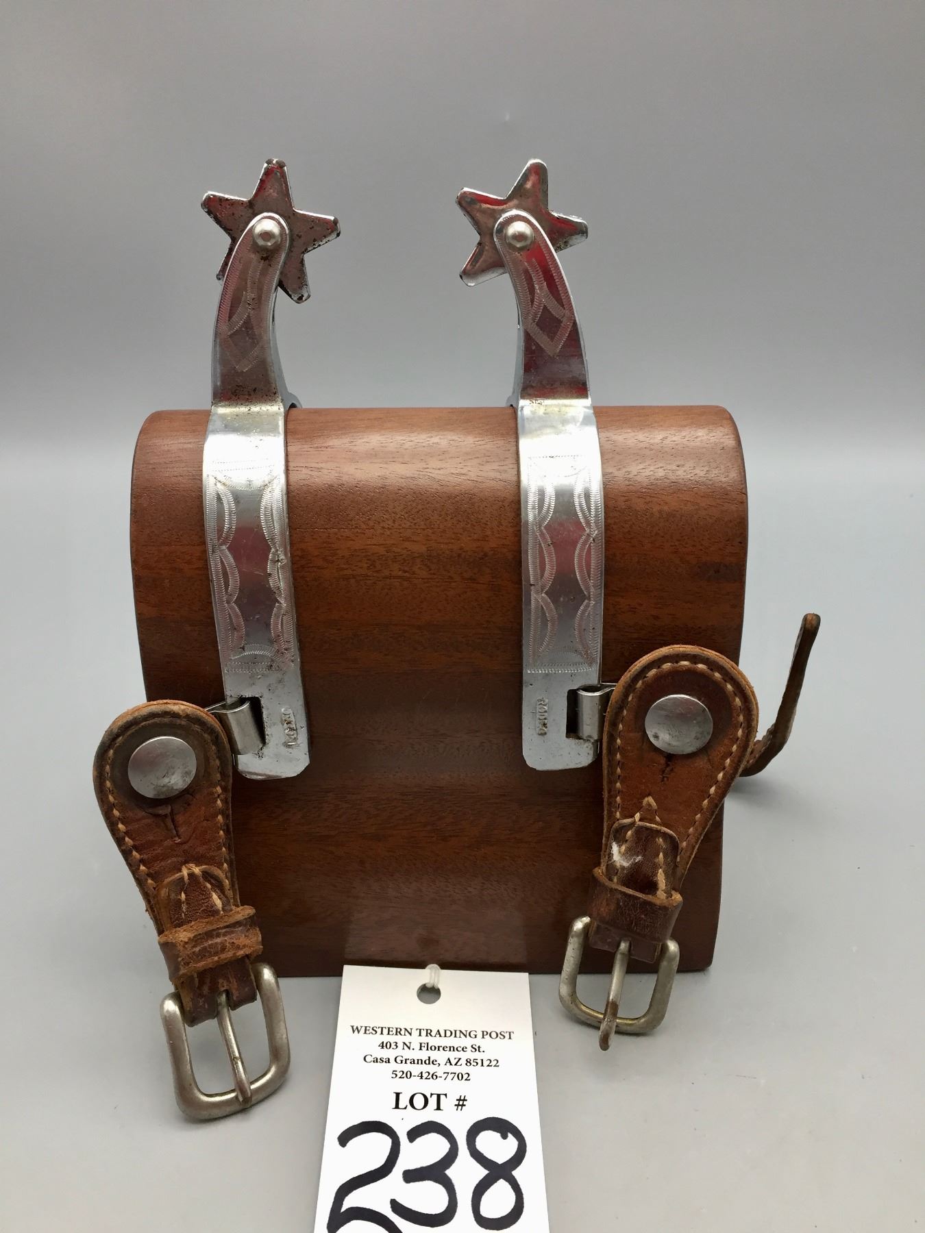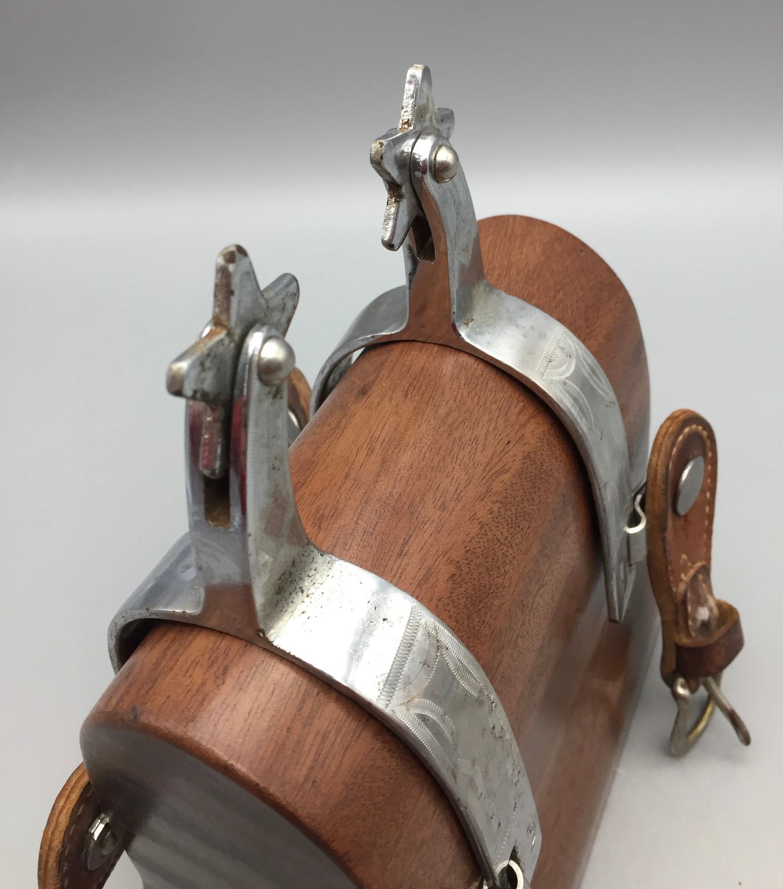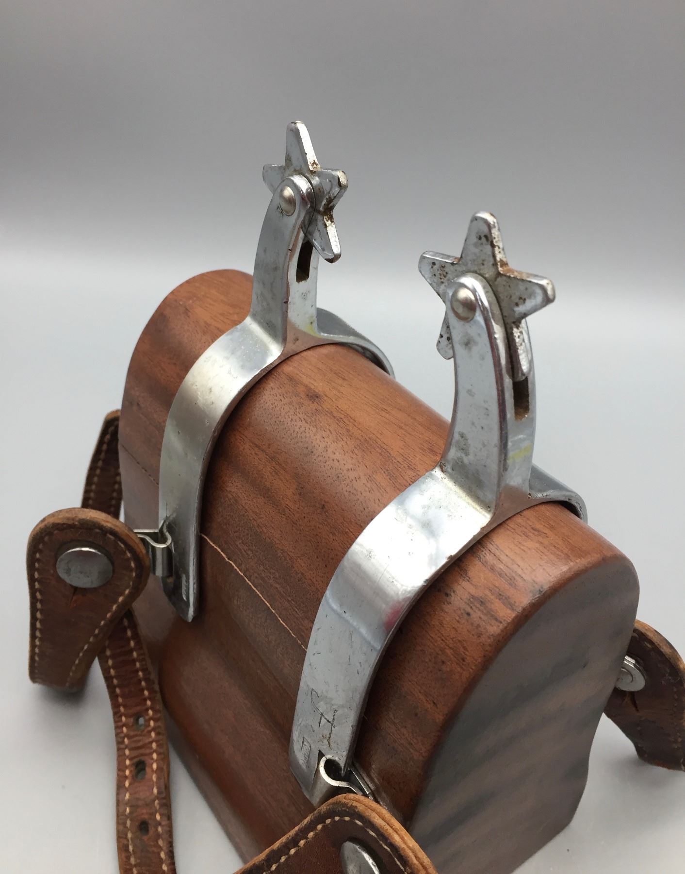 Description: Presented for sale in this lot are a pair of engraved “rodeo” spurs with simple brown leather strap. Maker: Kelly made these “Rodeo” brand spurs. Approx. Age: Vintage. Size: 3” heel, 2-1/4” shank, 3/4” band. Condition: Good for their age, normal wear expected. Please look closely at the pictures - they are an important part of our description. Shipping: There will be a $5 handling / packaging fee for shipping this lot. The actual cost of postage will be added on top of that.