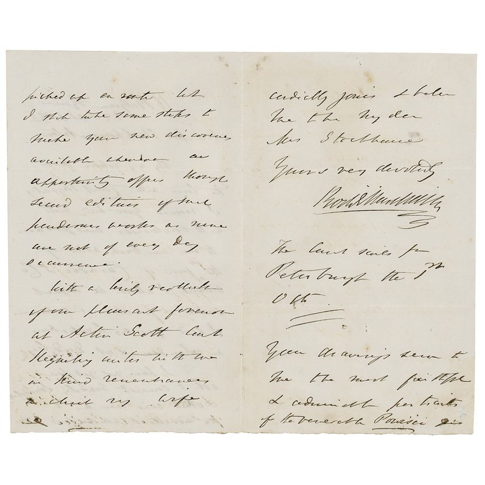 ALS, three pages on two adjoining sheets, 4.5 x 7.25, September 22, 1842. Handwritten letter to British botanist and archaeologist Frances Stackhouse Acton. In fine condition.
