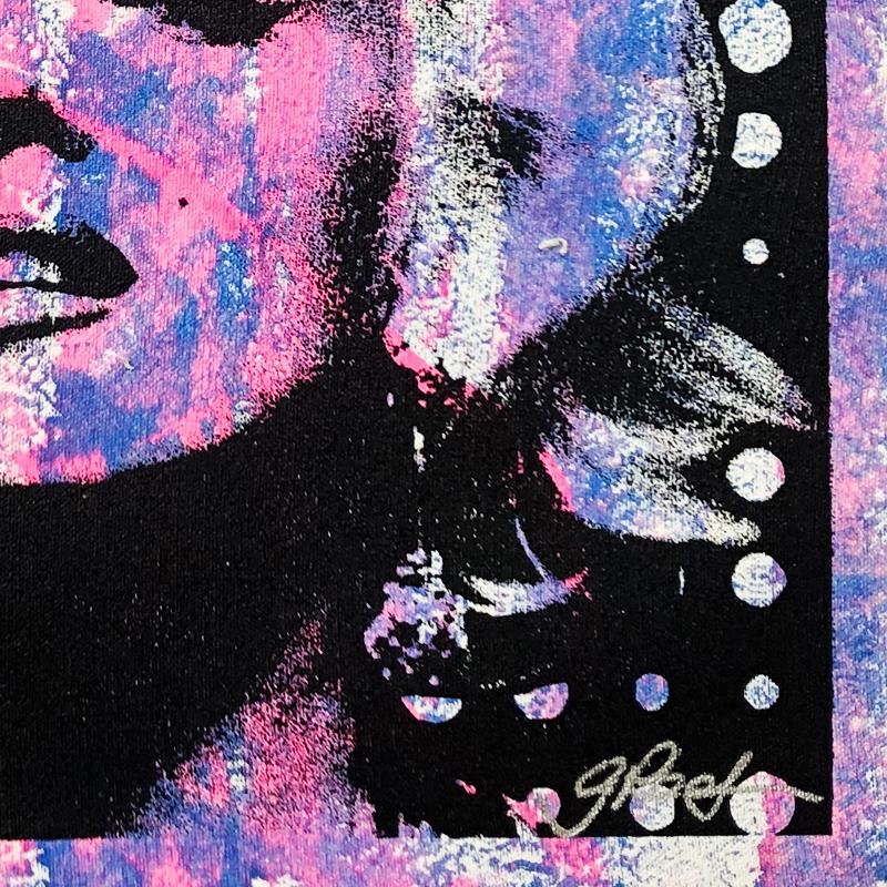 "Marilyn Monroe" is an original hand pulled silkscreen and acrylic painting on canvas by Gail Rodgers. Hand signed by the artist, the piece comes with a letter of authenticity. This piece is meant to be gallery wrapped and measure approximately 23" x 23" and image dimensions (after stretching) 16" x 16" (image).