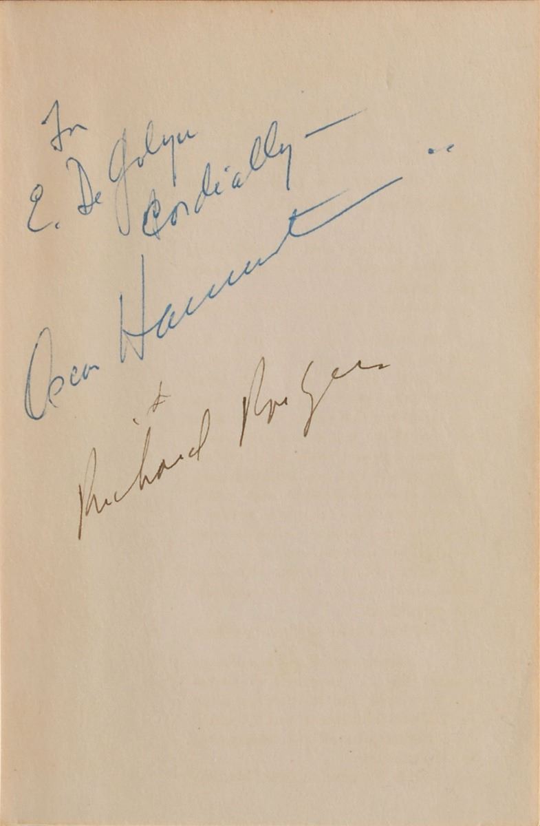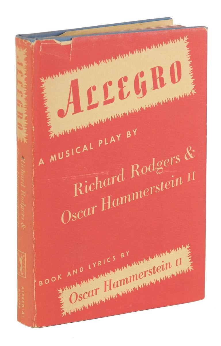 Signed book: Allegro. First edition. NY: Alfred A. Knopf, 1948. Hardcover with dust jacket, 5 x 7.5, 157 pages. Signed and inscribed on the first free end page in ink, “For E. De Golyer, Cordially—Oscar Hammerstein” and “Richard Rodgers.” In fine condition.