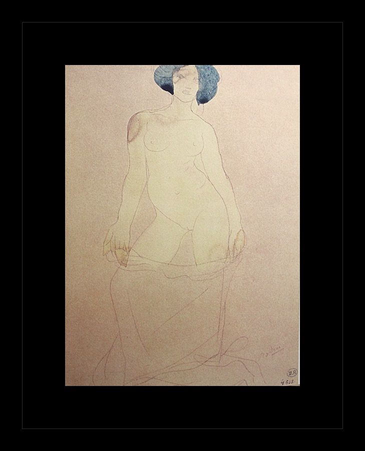 Erotic sketch lithograph by Auguste Rodin titled, "Standing Female Nude, Holding Her Dress Up To Her Thighs". The original was pencil, watercolor and gouache on paper. Comes gallery framed black on black.